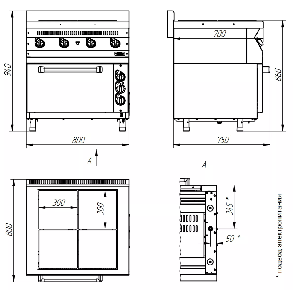 Плита электрическая четырехконфорочная с жарочным шкафом Абат ЭПК-47ЖШ (крашеные боковые панели) — всё, что нужно для комплексного приготовления