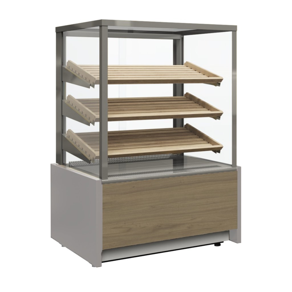 Витрина кондитерская Carboma KC70 N 0,9-1 Light Bread Паттерн (0110 Мариель) хлебная, со стеклом предназначена для кратковременного хранения и привлекательной демонстрации хлебобулочных изделий. Наличие фронтального стекла обеспечивает защиту продукции от внешних воздействий, сохраняя её свежесть и гигиеничность, при этом демонстрационная зона остаётся полностью обозримой для покупателей.