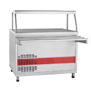 Он оснащён столешницей с встроенной системой охлаждения, на которой удобно размещать салаты и закуски. Дополнительная полка позволяет выставлять продукты, не требующие понижения температуры. В нижней части конструкции предусмотрен ящик для хранения кухонного инвентаря.