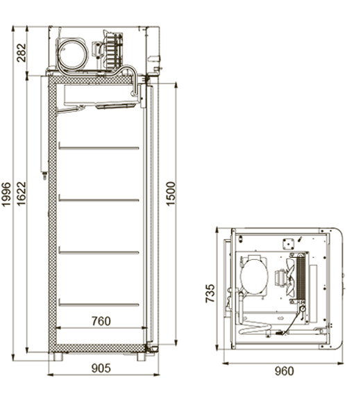 Каталог оборудования Холодильное оборудованиеШкафы холодильныеШкафы морозильные низкотемпературные до -18 °СШкаф морозильный Polair CB107-Sm Alu Шкаф морозильный Polair CB107-Sm Alu Код товара: 062-592 Поделиться: WhatsAppTelegram СравнитьДобавить в КПВ избранное 0 149 175 ₽ В корзину 0 шт Под заказСамовывоз сегодня бесплатно Взять в кредит Купить в лизинг Получить консультацию в WhatsApp Описание Характеристики Отзывы 0 Инструкции 4 Шкаф морозильный Polair CB107-Sm Alu предназначен для демонстрации и надежного хранения продуктов на предприятиях общественного питания и торговли. Цельнозаливной корпус выполнен из стали с полимерным покрытием и дополнен алюминиевыми профилями, что обеспечивает высокую механическую прочность и долговечность конструкции. Алюминиевые элементы дверей и верхней панели подчеркивают современный и премиальный дизайн. Шкаф стабильно работает при температуре окружающей среды до +40 °С и относительной влажности воздуха до 80%, сохраняя продукты в оптимальных условиях. Основные особенности: Электронный блок управления с жидкокристаллическим дисплеем Верхнее расположение агрегата, обеспечивающее удобный доступ к внутреннему объему Клапан Шредера для обслуживания системы охлаждения Компенсационный клапан с ПЭНом обогрева для предотвращения перепадов давления ПЭН обогрева трубки слива конденсата и ПЭН обогрева дверного проема для защиты от наледи Распашной тип дверей с возможностью изменения стороны открывания Интегрированные ручки, встроенные в алюминиевые профили дверей Эластичные уплотнители с магнитными вставками, обеспечивающие максимальную герметизацию Встроенная внутренняя подсветка для удобного обзора содержимого Микропереключатель, отключающий вентилятор и включающий подсветку при открытии двери Регулируемые по высоте ножки и педаль для открывания двери, повышающие эргономику использования Замок для безопасного хранения продукции 4 полки формата GN 2/1 (530×650 мм) с допустимой нагрузкой до 40 кг Толщина теплоизоляции корпуса — 61 мм Изображение товара, представленного на фото, может отличаться от его фактического вида. Показать все Габаритные размеры735×945×1996 ммДиапазон рабочей температурыдо -18 °CДлина735 ммГлубина450 ммВысота1996 ммОбъём700 лМатериал корпусаНержавеющая сталь Тип управленияМеханическое Расход электроэнергии в сутки12 кВтКоличество полок2 штКоличество дверей1 штЗамокЕсть Тип двериМеталлическая Способ открыванияРаздвижные (купе) Напряжение220 ВХладагентR290 Расположение агрегатаНижнее Габариты в упаковке850×988×2160 ммВес нетто128 кгВес брутто152 кгБрендPolair Оставить отзыв Еще никто не оставил отзыв на этот товар Схема POLAIR CB107-Sm.jpgИнструкция на POLAIR CB107-Sm.pdfСертификат соответствия.pdfДекларация о соответствии.pdf Похожие товары Перейти в каталог Под заказ 134 024 ₽ Шкаф морозильный Polair CB107hd-G Под заказ 62 170 ₽ Шкаф морозильный для икры и пресервов TEFCOLD UR90G-SUB ZERO черный Под заказ 142 315 ₽ Шкаф морозильный Рапсодия R 750 LX Под заказ 61 617 ₽ Шкаф морозильный HURAKAN HKN-RFS400 В наличии 201 690 ₽ Шкаф морозильный Полюс Carboma F1400 В наличии 127 415 ₽ Шкаф морозильный Polair CB107-S Под заказ 79 664 ₽ Шкаф морозильный со стеклом TEFCOLD UF100GCP Под заказ 112 926 ₽ Шкаф морозильный Ангара 1000 КБК С этим товаром покупают Под заказ 149 310 ₽ Витрина холодильная Полюс GC110 SM 2,0-1 (Bavaria 2) Под заказ 104 760 ₽ Витрина морозильная Carboma GС95 ВХСн-1,0 (GС95 SL 1,0-1) В наличии 106 487 ₽ Шкаф холодильный 