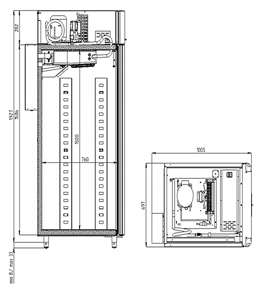 Каталог оборудования Холодильное оборудованиеШкафы холодильныеСпециализированные холодильные шкафыШкаф холодильный для хлебопекарных производств Polair CS107 Bakery Br (Тип 1) Шкаф холодильный для хлебопекарных производств Polair CS107 Bakery Br (Тип 1) Код товара: 009-389 Поделиться: WhatsAppTelegram СравнитьДобавить в КПВ избранное 0 397 290 ₽ В корзину 0 шт В наличии на 2 складахДоступно для заказа 2 шт.Наличие на складахМоскваМО, Бритово, Раменский гор. округ, Складской комплекс ССТ, корп. 2, секция 2В наличии 1 шт.Санкт-ПетербургЛО, Центральное отделение (Промышленный район), д.29 к3В наличии 1 шт.Самовывоз сегодня бесплатно Расчет стоимости доставкиОткудаМоскваСанкт-ПетербургКудаМоскваСанкт-ПетербургАстраханьБарнаулБелгородБрянскВладивостокВолгоградВоронежЕкатеринбургИвановоИжевскИркутскКазаньКалининградКемеровоКировКраснодарКрасноярскКурскЛипецкМагнитогорскМахачкалаНабережные ЧелныНижний НовгородНижний ТагилНовокузнецкНовосибирскОмскОренбургПензаПермьПятигорскРостов-на-ДонуРязаньСамараСаратовСимферопольСтавропольТверьТольяттиТомскТулаТюменьУлан-УдэУльяновскУфаХабаровскЧебоксарыЧелябинскЯрославльРассчитатьРасчет стоимости доставки указан приблизительный, более точный расчет Вам может осуществить сотрудник транспортной компании. Взять в кредит Купить в лизинг Получить консультацию в WhatsApp Описание Характеристики Отзывы 0 Инструкции 5 Шкаф холодильный для хлебопекарных производств Polair CS107 Bakery Br (Тип 1) предназначен для создания оптимальных условий хранения и расстойки заготовок из теста на предприятиях общественного питания и торговли. Корпус цельнозаливной конструкции выполнен из нержавеющей стали, дверь утеплена пенополиуретаном для надежной термоизоляции. Оборудование рассчитано на работу при температуре окружающей среды до +40 °C. В комплект поставки входят 20 пар направляющих размером 400×600 мм. Особенности: Автоматическая оттайка с системой испарения конденсата Верхнее расположение агрегата Универсальные режимы: охлаждение заготовок и замедление ферментации, хранение, регенерация, брожение и расстойка Электронная панель управления с 5-дюймовым дисплеем для точного контроля температуры, влажности (регулируется от 60 до 95 %), скорости вентилятора и времени Возможность создания и сохранения собственных программ Встроенный ультразвуковой увлажнитель (требуется подключение к системе подачи воды с обязательной водоочисткой и к централизованной канализации) Распашная дверь с механизмом самозакрывания и лёгкозаменяемым магнитным уплотнителем Съёмные направляющие для удобной очистки и регулировки расстояния между уровнями Штампованное углубление в дне корпуса для облегчения ухода Педаль для удобного открытия двери Экологичный хладагент R290 Энергоэффективность: потребляемая мощность — 0,55 кВт (охлаждение), 0,9 кВт (нагрев) Polair CS107 Bakery Br (Тип 1) — это функциональный и надёжный шкаф для пекарен и производств, где требуется точный контроль температуры и влажности. Широкий выбор режимов, продуманная конструкция и удобное управление обеспечивают стабильное качество изделий и комфортную работу персонала. Изображение товара, представленного на фото, может отличаться от его фактического вида. Показать все Габаритные размеры697×1005×1960 ммДиапазон рабочей температурыот -10 до +40 °CДлина697 ммШирина1005 ммВысота1960 ммОбъё