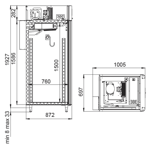 Каталог оборудования Холодильное оборудованиеШкафы холодильныеСпециализированные холодильные шкафыШкаф холодильный для вызревания мяса Polair CS107 Meat черный, со стеклом (Тип 2) Шкаф холодильный для вызревания мяса Polair CS107 Meat черный, со стеклом (Тип 2) Код товара: 062-633 Поделиться: WhatsAppTelegram СравнитьДобавить в КПВ избранное 0 392 700 ₽ В корзину 0 шт Под заказСамовывоз сегодня бесплатно Взять в кредит Купить в лизинг Получить консультацию в WhatsApp Описание Характеристики Отзывы 0 Инструкции 5 Шкаф холодильный для вызревания мяса Polair CS107 Meat черный, со стеклом (Тип 2) предназначен для создания оптимальных условий хранения и дозревания мяса на предприятиях общественного питания и торговли. Монолитный цельнозаливной корпус выполнен снаружи и на двери из окрашенной стали, внутри — из нержавеющей стали, дверь оснащена стеклопакетом. Оборудование рассчитано на работу при температуре окружающей среды до 40 °С. Особенности: Верхнее расположение агрегата для эффективного распределения холода Многофункциональная русифицированная панель управления с дисплеем диагональю 5" Возможность создания и сохранения собственных программ в памяти электронного блока Четыре перфорированные полки для удобного размещения продукции Встроенный ультразвуковой увлажнитель (требуется подключение к системе очищенной воды и централизованной канализации) UV-лампа для обеззараживания воздуха, обеспечивающая санитарную безопасность Распашная дверь с заливной теплоизоляцией и сменным уплотнителем с магнитной вставкой Встроенная удобная ручка Отключаемая внутренняя LED-подсветка Штампованное углубление в дне корпуса для удобства уборки Педаль для бесконтактного открывания двери Максимальная нагрузка на полку — 40 кг Толщина стенок корпуса — 43 мм Polair CS107 Meat черный, со стеклом (Тип 2) — это надежный и функциональный холодильный шкаф, который обеспечивает стабильные и комфортные условия для хранения и дозревания мяса. Высококачественные материалы корпуса и дверей, продвинутые системы увлажнения и обеззараживания воздуха, а также удобное управление позволяют значительно повысить качество продукции и эффективность работы предприятий пищевой отрасли.Изображение товара, представленного на фото, может отличаться от его фактического вида. Показать все Габаритные размеры697×1005×1960 ммДиапазон рабочей температурыот -2 до +30 °CДлина697 ммШирина1005 ммВысота1960 ммОбъём700 лКол-во дверей1 Тип двериСтеклянная Количество полок4 штДопустимая нагрузка на полку40 кгУровень влажностиот 60 до 95 %Холодильный агрегатВстроенный Тип оттайкиАвтоматическая Тип охлажденияДинамическое ПодсветкаЕсть UV-лампаЕсть ХладагентR290 Вес нетто160 кгВес брутто190 кгБрендPolairВсе специализированные холодильные шкафы Из нержавейкиВсе специализированные холодильные шкафы Стеклянная дверь Оставить отзыв Еще никто не оставил отзыв на этот товар Схема POLAIR CS107-Meat.jpgИнструкция на POLAIR CS107-Meat.pdfБрошюра на POLAIR CS107-Meat.pdfДекларация о соответствии.pdfСертификат соответствия.pdf Похожие товары Перейти в каталог Под заказ 391 000 ₽ Шкаф холодильный для вызревания мяса Polair CS107 Meat (Тип 2) Под заказ 390 915 ₽ Шкаф холодильный для вызревания салями Polair CS107 Salami Под заказ 402 050 ₽ Шкаф холодильный для вызревания мяса Polair CS107 Meat со стеклом (Тип 2) В наличии 405 365 ₽ Шкаф холодильный для хлебопекарных производств Polair CS107 Bakery Br черный, со с