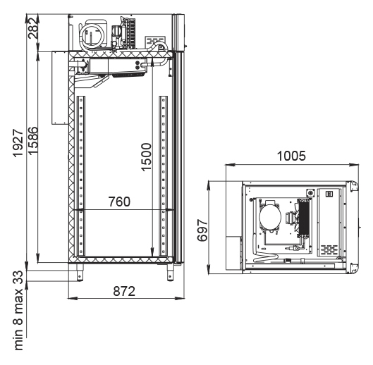 Каталог оборудования Холодильное оборудованиеШкафы холодильныеСпециализированные холодильные шкафыШкаф холодильный для вызревания сыра Polair CS107 Cheese полки нерж., со стеклом Шкаф холодильный для вызревания сыра Polair CS107 Cheese полки нерж., со стеклом Код товара: 062-630 Поделиться: WhatsAppTelegram СравнитьДобавить в КПВ избранное 0 397 800 ₽ В корзину 0 шт Под заказСамовывоз сегодня бесплатно Взять в кредит Купить в лизинг Получить консультацию в WhatsApp Описание Характеристики Отзывы 0 Инструкции 5 Шкаф холодильный для вызревания сыра Polair CS107 Cheese полки нерж., со стеклом предназначен для создания оптимальных условий хранения и дозревания твердых и полутвердых сыров на предприятиях общественного питания и торговли. Монолитный цельнозаливной корпус изготовлен из нержавеющей стали снаружи и изнутри (кроме задней стенки), что обеспечивает высокую прочность и долговечность шкафа. Дверь выполнена из стеклопакета. Оборудование рассчитано на работу при температуре окружающей среды до 40 °С. Особенности: Верхнее расположение агрегата Многофункциональная русифицированная контрольная панель с 5-дюймовым дисплеем Возможность создания и сохранения собственных программ в памяти электронного блока Четыре перфорированные полки из нержавеющей стали Встроенный ультразвуковой увлажнитель (требуется подключение к системе очищенной воды и централизованной канализации) Распашная дверь с заливной теплоизоляцией Заменяемый уплотнитель двери с магнитной вставкой Встроенная ручка для удобства открытия Отключаемая внутренняя LED-подсветка Штампованное углубление в дне корпуса для удобства очистки Педаль для бесконтактного открывания двери Регулировка уровня влажности от 60% до 95% Максимальная нагрузка на полку — 40 кг Толщина стенки корпуса — 43 мм Polair CS107 Cheese полки нерж., со стеклом — надежный и функциональный холодильный шкаф, обеспечивающий оптимальные условия для хранения и дозревания твердых и полутвердых сыров. Благодаря прочному корпусу, точному контролю температуры и влажности, а также современным технологиям увлажнения и управления, оборудование способствует сохранению качества и вкусовых характеристик продукции, повышая эффективность работы предприятий питания и торговли.Изображение товара, представленного на фото, может отличаться от его фактического вида. Показать все Габаритные размеры697×1005×1960 ммДиапазон рабочей температурыот -2 до +30 °CДлина697 ммШирина1005 ммВысота1960 ммОбъём700 лКол-во дверей1 Тип двериСтеклянная Количество полок4 штДопустимая нагрузка на полку40 кгУровень влажностиот 60 до 95 %Холодильный агрегатВстроенный Тип оттайкиАвтоматическая Тип охлажденияДинамическое ПодсветкаЕсть ХладагентR290 Вес нетто160 кгВес брутто190 кгБрендPolairВсе специализированные холодильные шкафы Из нержавейкиВсе специализированные холодильные шкафы Стеклянная дверь Оставить отзыв Еще никто не оставил отзыв на этот товар Схема POLAIR CS107 Cheese.jpgИнструкция на POLAIR CS107 Cheese.pdfБрошюра на POLAIR CS107 Cheese.pdfДекларация о соответствии.pdfСертификат соответствия.pdf Похожие товары Перейти в каталог Под заказ 207 942 ₽ Шкаф холодильный HURAKAN HKN-MA350 для созревания мяса Под заказ 385 475 ₽ Шкаф холодильный для вызревания сыра Polair CS107 Cheese полки окраш. Под заказ 391 000 ₽ Шкаф холодильный для вызревания сыра Polair CS107 Cheese полки нерж. Под заказ 252 314 ₽ Шкаф холодильный для вызревания мяса и