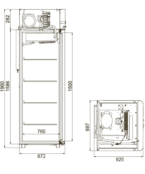 Каталог оборудования Холодильное оборудованиеШкафы холодильныеШкафы холодильные универсальные от -5 до +5 °СШкаф холодильный универсальный Polair CV107-Sm Alu Шкаф холодильный универсальный Polair CV107-Sm Alu Код товара: 062-611 Поделиться: WhatsAppTelegram СравнитьДобавить в КПВ избранное 0 129 370 ₽ В корзину 0 шт Под заказСамовывоз сегодня бесплатно Взять в кредит Купить в лизинг Получить консультацию в WhatsApp Описание Характеристики Отзывы 0 Инструкции 4 Шкаф холодильный универсальный Polair CV107-Sm Alu предназначен для демонстрации и надежного хранения продуктов на предприятиях общественного питания и торговли. Цельнозаливной корпус выполнен из стали с полимерным покрытием и оснащен алюминиевыми профилями, что обеспечивает высокую прочность конструкции и долговечность, а также подчеркивает современный премиальный дизайн. Шкаф работает при температуре окружающей среды до 40 °С и влажности воздуха до 80%. Особенности модели: Контрольная панель с быстрым доступом к настройкам, удобным возвратом в предыдущее меню и возможностью полного отключения без отдельной кнопки. Жидкокристаллический дисплей для наглядного отображения параметров. Клапан Шредера для обслуживания холодильной системы. Компенсационный клапан с ПЭНом обогрева, ПЭНы обогрева трубки слива конденсата и дверного проема — предотвращают образование льда и обеспечивают надежную работу. Распашной тип двери с возможностью изменения стороны открывания, что делает установку более гибкой. Полностью интегрированные ручки, удобные и стильные. Эластичные уплотнители с магнитными вставками для максимальной герметизации. Внутренняя подсветка вынесена на нижнюю часть фронтальной панели. Микропереключатель для автоматического отключения вентилятора и включения подсветки при открытии дверей. Регулируемые по высоте ножки для устойчивости на любом полу. Педаль для удобного открывания без рук. Замок для защиты содержимого. Высокая допустимая нагрузка на полку — до 40 кг. Размер полки: GN 2/1 (530×650 мм). Толщина стенки корпуса — 43 мм, что обеспечивает отличную теплоизоляцию. Polair CV107-Sm Alu — это функциональный и надежный холодильный шкаф с современным дизайном, который обеспечивает максимальную сохранность и удобный доступ к продуктам. Отлично подходит для ресторанов, кафе и магазинов, где важны надежность, стиль и энергоэффективность.Изображение товара, представленного на фото, может отличаться от его фактического вида. Показать все Габаритные размеры697×925×1960 ммДиапазон рабочей температурыот -5 до +5 °CДлина697 ммГлубина925 ммВысота1960 ммОбъём700 лРазмер полки530×650 ммКоличество полок4 штКоличество дверей1 штТип оттайкиАвтоматическая Тип охлажденияДинамическое Тип управленияЭлектронное Материал корпусаНержавеющая сталь Тип двериМеталлическая ЗамокЕсть Способ открыванияРаспашные ХладагентR290 Холодильный агрегатВстроенный Расположение агрегатаВерхнее Потребление электроэнергии в сутки4,5 кВтПотребляемая мощность0,4 кВтНапряжение220 ВГабариты в упаковке800×1000×2150 ммВес нетто113 кгВес брутто138 кгБрендPolairВсе шкафы холодильные универсальные от -5 до +5 °С Из нержавейки Оставить отзыв Еще никто не оставил отзыв на этот товар Схема POLAIR CV107-Sm.jpgИнструкция на POLAIR CV107-Sm.pdfДекларация о соответствии.pdfСертификат соответствия.pdf Похожие товары Перейти в каталог Под заказ 168 276 ₽ Шкаф холодильный универсальный Polair
