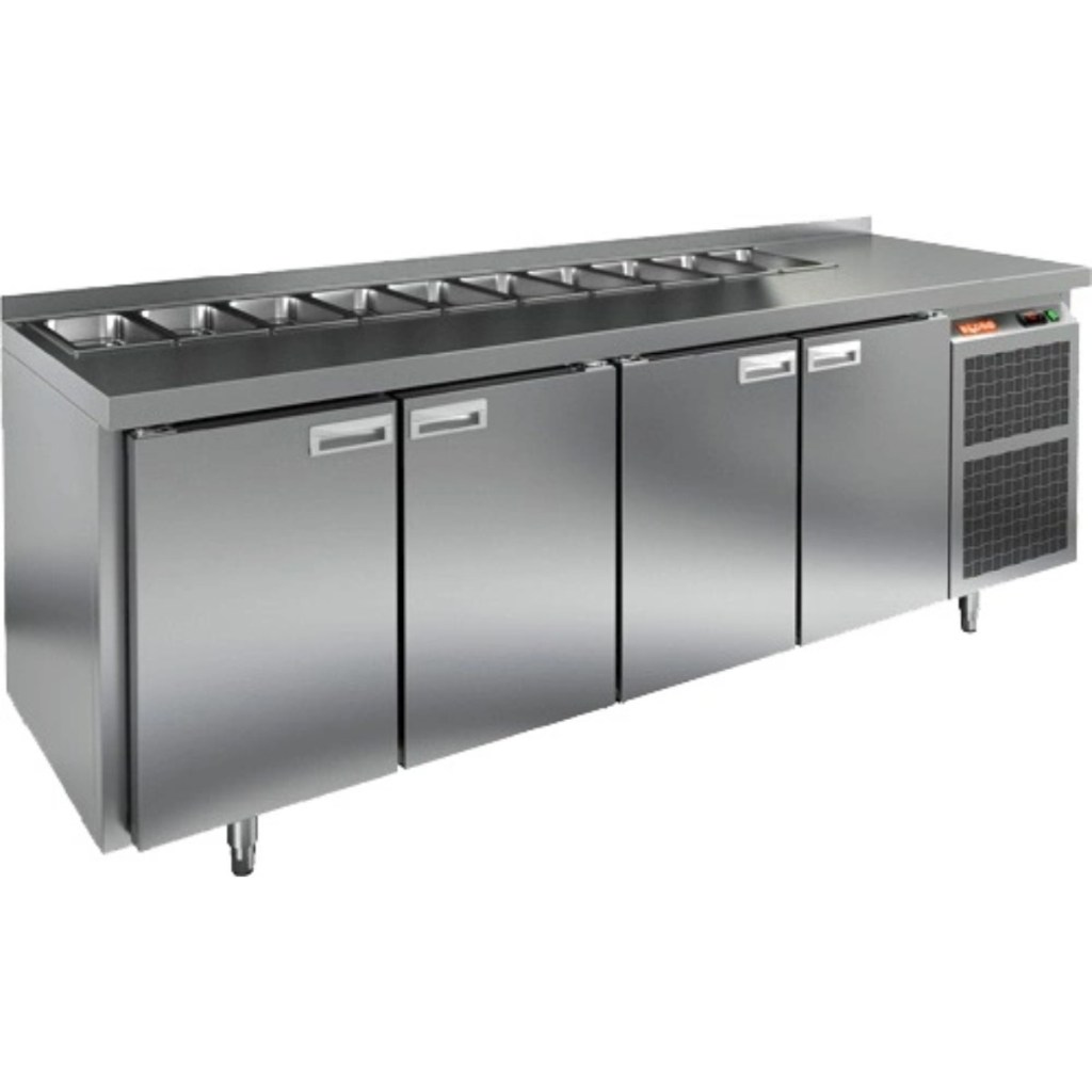 Каталог оборудования Холодильное оборудованиеСтолы охлаждаемыеСтолы холодильные для салатовСтол холодильный для салатов HiCold SL1-1111GN (1/3) М Стол холодильный для салатов HiCold SL1-1111GN (1/3) М Код товара: 064-511 Поделиться: WhatsAppTelegram СравнитьДобавить в КПВ избранное 0 220 492 ₽ В корзину 0 шт Под заказСамовывоз сегодня бесплатно Взять в кредит Купить в лизинг Получить консультацию в WhatsApp Описание Характеристики Отзывы 0 Инструкции 2 Стол холодильный для салатов HiCold SL1-1111GN (1/3) М предназначен для предприятий общественного питания и торговли. Он обеспечивает хранение и подготовку ингредиентов для пиццы, салатов и других блюд, а также охлаждение и кратковременное хранение скоропортящихся продуктов. Модель сочетает рабочую поверхность и холодильный объем, позволяя повару иметь все необходимые компоненты под рукой. Корпус и столешница выполнены из нержавеющей стали, обеспечивая надежность и долговечность. Особенности: Динамическая система охлаждения — равномерное распределение температуры внутри холодильного объема. Автоматическая оттайка — упрощает уход за оборудованием. Электронная панель управления — точная настройка температуры и режимов работы. 4 вместительные внутренние полки формата GN 1/1 — удобное хранение ингредиентов. Автоматические доводчики дверей с фиксатором открытого положения — комфорт и безопасность работы. Легкозаменяемые магнитные уплотнители — простота обслуживания. Открытая агрегатная часть — облегчает доступ для обслуживания. Регулируемые по высоте ножки — адаптация к рабочей поверхности. Столешница с бортом и крышкой, толщина столешницы и теплоизоляции 50 мм — надежная защита и удобство работы. Модификация “М” — замена ножек на колёса (2 со стопором, 2 без стопора) для мобильности стола. Размер полки: 530×325 мм (GN 1/1) Максимальная глубина гастроемкостей: 100 мм HiCold SL1-1111GN (1/3) М — многофункциональный и надежный стол для профессиональной кухни. Обеспечивает удобство работы, эффективное охлаждение и безопасное хранение продуктов. Мобильная модификация с колёсами позволяет легко перемещать стол, что делает его идеальным для ресторанов, кафе и пиццерий. Изображение товара, представленного на фото, может отличаться от его фактического вида. Показать все Габаритные размеры2280×700×850 ммДиапазон рабочей температурыот +2 до +10 °CРасположение агрегатаБоковое Материал столешницыНержавеющая Тип столаС дверьми Тип двериГлухая Объём660 лКоличество дверей4 штТип гастроемкостейGN 1/3 Размер полки530×325 ммНапряжение220 ВМощность0,48 кВтТип охлажденияДинамический Тип оттайкиАвтоматическая СтолешницаС бортом Вес нетто145 кгВес брутто211 кгБрендHicold Оставить отзыв Еще никто не оставил отзыв на этот товар Паспорт на HICOLD SL1-1111GN М.pdfДекларация о соответствии.pdf Ранее просмотрено Под заказ 241 532 ₽ Компрессорно-конденсаторный блок Север АСМ-AFM86 Под заказ 62 170 ₽ Шкаф морозильный для икры и пресервов TEFCOLD UR90G-SUB ZERO черный Под заказ 197 276 ₽ Компрессорно-конденсаторный блок Север BGSF 330 S Под заказ 88 920 ₽ Витрина холодильная настольная Carboma AC59 VV 0,7-1 (фронт стандартный цвет) Под заказ 127 000 ₽ Витрина кондитерская Carboma KC70 N 1,3-1 Light Bread Паттерн (0105 Венге) хлебная, со стеклом Под заказ 391 000 ₽ Шкаф холодильный для вызревания мяса Polair CS107 Meat (Тип 2)