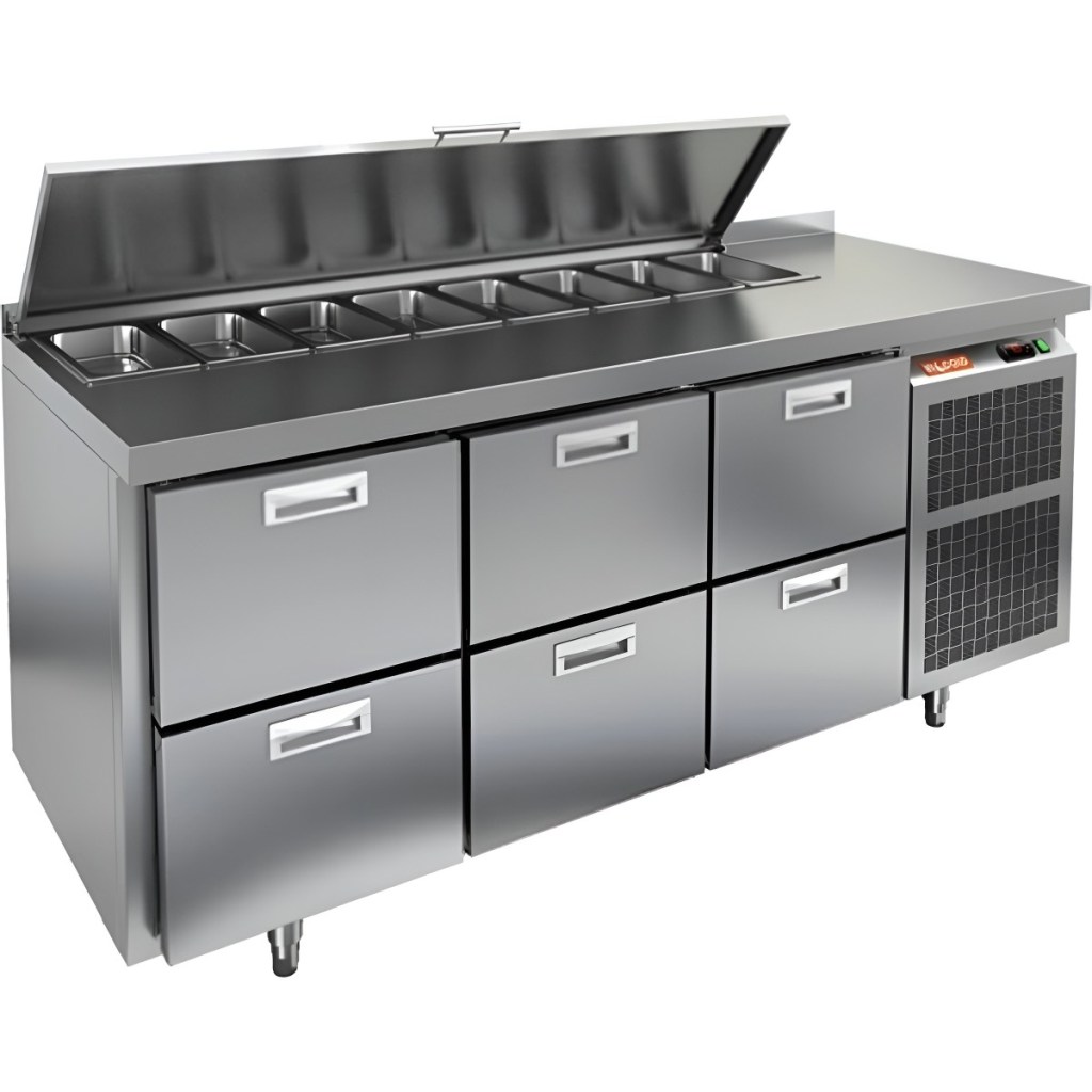 Каталог оборудования Холодильное оборудованиеСтолы охлаждаемыеСтолы холодильные для салатовСтол холодильный для салатов HiCold SL1-222GN (1/3) с крышкой Стол холодильный для салатов HiCold SL1-222GN (1/3) с крышкой Код товара: 064-844 Поделиться: WhatsAppTelegram СравнитьДобавить в КПВ избранное 0 260 092 ₽ В корзину 0 шт Под заказСамовывоз сегодня бесплатно Взять в кредит Купить в лизинг Получить консультацию в WhatsApp Описание Характеристики Отзывы 0 Инструкции 1 Стол холодильный для салатов HiCold SL1-222GN (1/3) предназначен для использования на предприятиях общественного питания и торговли. Он объединяет рабочую поверхность и охлаждаемый отсек, что делает его удобным решением для хранения, охлаждения и подготовки ингредиентов при приготовлении салатов, пиццы и других блюд. Такая конструкция позволяет повару работать быстрее и эффективнее, так как все необходимые продукты находятся под рукой. Корпус и столешница выполнены из прочной нержавеющей стали, устойчивой к коррозии и легко поддающейся санитарной обработке.Металлическая крышка защищает продукты от загрязнений и сохраняет их свежесть. Особенности модели: Электронная панель управления — точная настройка температурного режима. 6 выдвижных ящика — быстрое размещение и замена продуктов. Вместимость салат-бара — до 8 гастроемкостей глубиной до 100 мм. Автоматические доводчики — комфорт при загрузке/выгрузке. Легкозаменяемые магнитные уплотнители — надежная герметичность. Открытая агрегатная часть — быстрый доступ для обслуживания. Регулируемые по высоте ножки — устойчивость даже на неровном полу. Толщина столешницы, борта и теплоизоляции — 50 мм, что обеспечивает прочность и энергоэффективность конструкции. HiCold SL1-222GN (1/3) — практичное и удобное решение для профессиональной кухни, обеспечивающее удобную подготовку и хранение ингредиентов.Изображение товара, представленного на фото, может отличаться от его фактического вида. Показать все Габаритные размеры1835×700×850 ммДиапазон рабочей температурыот +2 до +10 °CРасположение агрегатаБоковое Материал столешницыНержавеющая Тип столаС ящиками Объём505 лТип гастроемкостейGN 1/3 Количество ящиков6 штРазмер полки530×325 ммНапряжение220 ВМощность0,46 кВтТип охлажденияДинамическое Тип оттайкиАвтоматическая СтолешницаС бортом Габариты в упаковке2000×850×1000 ммВес нетто120 кгВес брутто140 кгБрендHicold Оставить отзыв Еще никто не оставил отзыв на этот товар Декларация о соответствии.pdf Ранее просмотрено Под заказ 320 392 ₽ Стол холодильный для салатов HiCold SL1-2222GN (1/3) с крышкой В наличии Цена по запросу Компрессорно-конденсаторный блок Север AHM-NTZ068 Под заказ 255 412 ₽ Стол холодильный для салатов HiCold SL1-222GN (1/3) без крышки