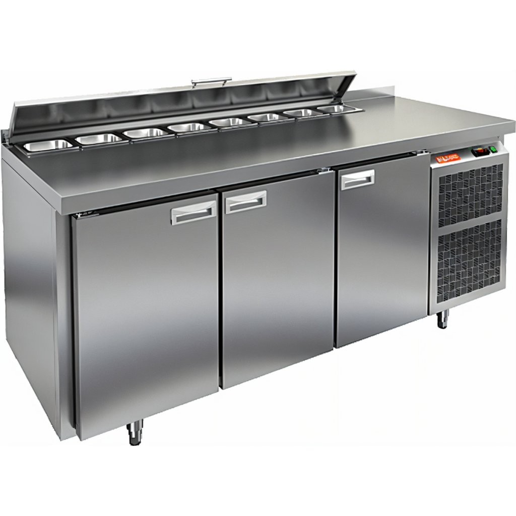 Каталог оборудования Холодильное оборудованиеСтолы охлаждаемыеСтолы холодильные для салатовСтол холодильный для салатов HiCold SL2-111GN (1/6) без крышки Стол холодильный для салатов HiCold SL2-111GN (1/6) без крышки Код товара: 064-805 Поделиться: WhatsAppTelegram 0 Цена по запросу Получить консультацию в WhatsApp Описание Характеристики Отзывы 0 Инструкции 2 Стол холодильный для салатов HiCold SL2-111GN (1/6) без крышки применяется на предприятиях общественного питания и торговли для хранения ингредиентов, используемых при приготовлении салатов, пиццы и других блюд. Он совмещает рабочую поверхность и охлаждаемый отсек, что упрощает работу персонала. Корпус и столешница выполнены из прочной и гигиеничной нержавеющей стали. Столешница с бортом предотвращает скатывание и проливание ингредиентов, обеспечивая аккуратность рабочего пространства. Важно: на фото представлена аналогичная модель с крышкой. Особенности: Электронная панель управления — точная настройка температуры и режимов. 3 полки формата GN 1/1 — вместительное внутреннее хранение. Салат-бар на 8 гастроемкостей — удобная организация ингредиентов. Автоматические доводчики дверей — комфортная эксплуатация. Съёмные магнитные уплотнители — простота замены и герметичность. Открытая агрегатная часть — лёгкий доступ к оборудованию. Регулируемые ножки — установка на любом покрытии. Гастроемкости до 100 мм глубиной, столешница и бортик — по 50 мм, теплоизоляция — 50 мм. HiCold SL2-111GN (1/6) без крышки — практичный, удобный и надёжный стол для профессиональной кухни, обеспечивающий быстрый доступ к охлаждённым ингредиентам и аккуратность рабочего процесса.Изображение товара, представленного на фото, может отличаться от его фактического вида. Показать все Габаритные размеры1835×700×850 ммДиапазон рабочей температурыот +2 до +10 °CРасположение агрегатаБоковое Материал столешницыНержавеющая Тип столаС дверьми Тип двериГлухая Объём505 лКоличество дверей3 штТип гастроемкостейGN 1/6 Размер полки530×325 ммНапряжение220 ВМощность0,46 кВтТип охлажденияДинамическое Тип оттайкиАвтоматическая СтолешницаС бортом Вес нетто120 кгВес брутто158 кгБрендHicold Оставить отзыв Еще никто не оставил отзыв на этот товар Паспорт на HICOLD SL2-111GN.pdfДекларация о соответствии.pdf Ранее просмотрено В наличии Цена по запросу Стол холодильный для салатов HiCold SL1-11GN (1/3) без крышки Под заказ Цена по запросу Стол холодильный для салатов HiCold SL2-22GN (1/6) с крышкой Под заказ Цена по запросу Стол холодильный для салатов HiCold SLE2-222GN (1/6) О с крышкой Под заказ Цена по запросу Стол холодильный для салатов HiCold SLE1-11GN (1/3) О З с крышкой Под заказ Цена по запросу Стол холодильный для салатов HiCold SLE1-111GN (1/3) без крышки