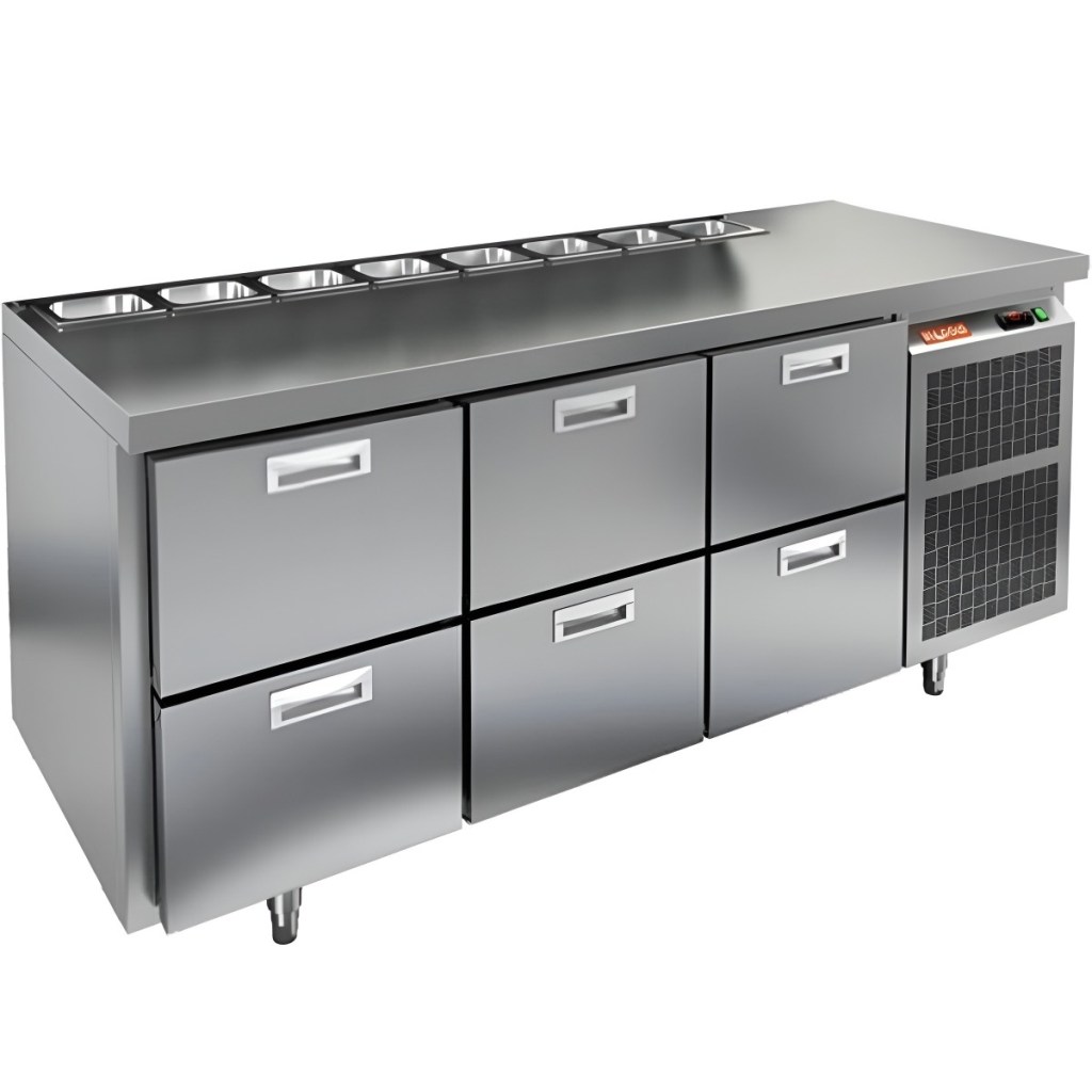 Каталог оборудования Холодильное оборудованиеСтолы охлаждаемыеСтолы холодильные для салатовСтол холодильный для салатов HiCold SL2-222GN (1/6) О без крышки Стол холодильный для салатов HiCold SL2-222GN (1/6) О без крышки Код товара: 064-818 Поделиться: WhatsAppTelegram СравнитьДобавить в КПВ избранное 0 255 862 ₽ В корзину 0 шт Под заказСамовывоз сегодня бесплатно Взять в кредит Купить в лизинг Получить консультацию в WhatsApp Описание Характеристики Отзывы 0 Инструкции 1 Стол холодильный для салатов HiCold SL2-222GN (1/6) О без крышки предназначен для использования на предприятиях общественного питания и торговли. Он подходит для хранения, обработки и кратковременного охлаждения ингредиентов, применяемых при приготовлении пиццы, салатов, закусок и других блюд. Модель совмещает охлаждаемый объем и рабочую поверхность, что значительно повышает удобство и скорость работы персонала. Корпус и столешница выполнены из прочной и гигиеничной нержавеющей стали, устойчивой к влаге, загрязнениям и механическим повреждениям. Особенности модели: Электронная панель управления — точная настройка температуры. Салат-бар на 8 гастроемкостей — быстрый доступ к ингредиентам. 6 внутренних ящиков — удобное размещение и легкая замена продуктов. Автоматические доводчики дверей — комфортная эксплуатация. Съёмные магнитные уплотнители — герметичность и стабильная температура. Открытая агрегатная часть — лёгкое обслуживание. Регулируемые ножки — установка на любой поверхности. Глубина гастроемкостей до 150 мм, столешница и теплоизоляция — 50 мм. HiCold SL2-222GN (1/6) О без крышки — универсальное и функциональное решение для профессиональной кухни, позволяющее оптимизировать рабочие процессы и повысить производительность за счет удобного хранения и быстрого доступа к ингредиентам.Изображение товара, представленного на фото, может отличаться от его фактического вида. Показать все Габаритные размеры1835×700×850 ммДиапазон рабочей температурыот +2 до +10 °CРасположение агрегатаБоковое Материал столешницыНержавеющая Тип столаС ящиками Объём505 лТип гастроемкостейGN 1/6 Количество ящиков6 штНапряжение220 ВМощность0,5 кВтТип охлажденияДинамическое Тип оттайкиАвтоматическая СтолешницаБез борта Габариты в упаковке2000×850×1000 ммВес нетто130 кгВес брутто180 кгБрендHicold Оставить отзыв Еще никто не оставил отзыв на этот товар Декларация о соответствии.pdf Ранее просмотрено Под заказ 204 930 ₽ Витрина холодильная Carboma GC110 VV 2,5-1 (с боковинами, динамика) 0011-9006