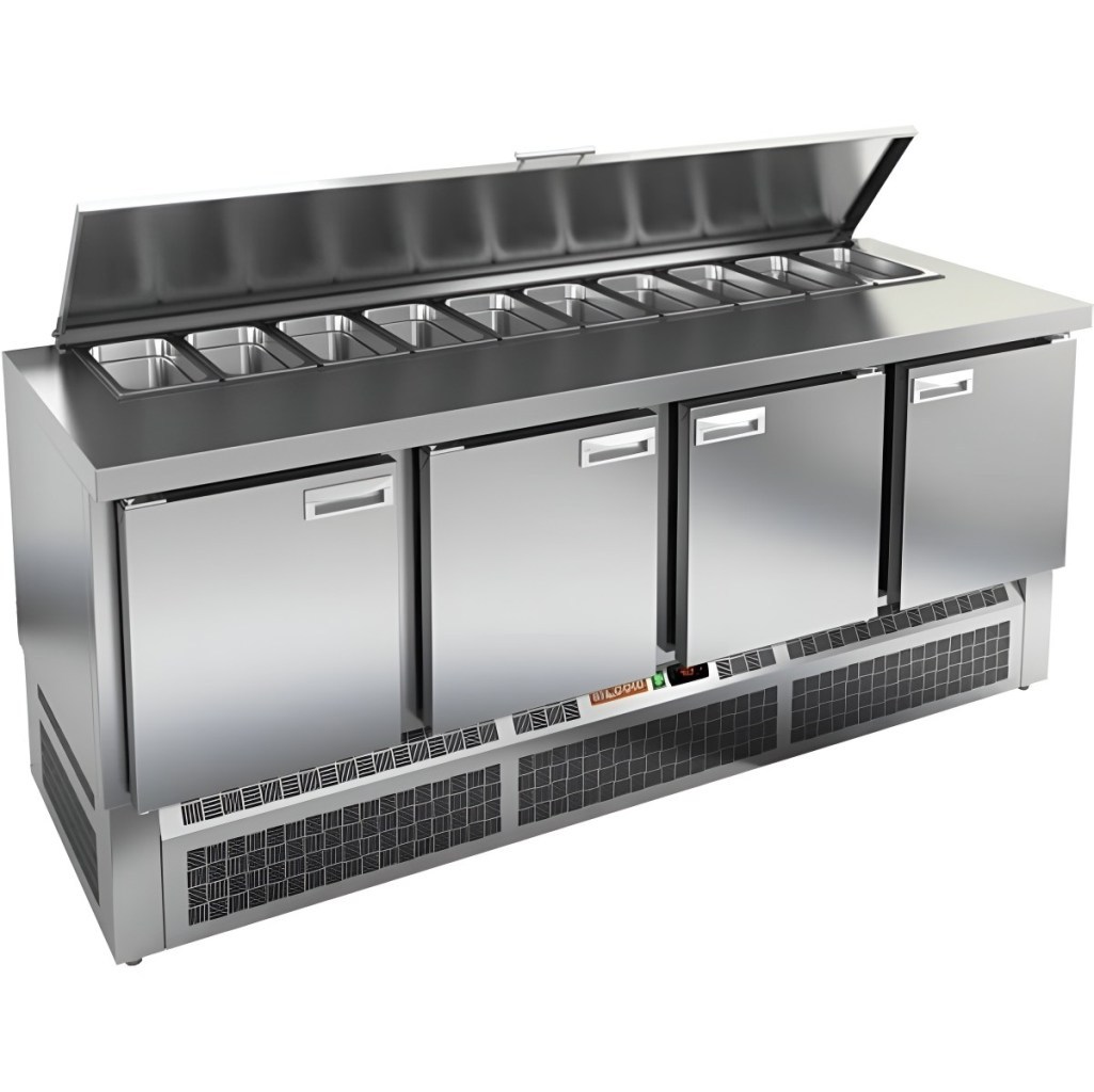 Каталог оборудования Холодильное оборудованиеСтолы охлаждаемыеСтолы холодильные для салатовСтол холодильный для салатов HiCold SLE1-11111GN (1/3) О с крышкой Стол холодильный для салатов HiCold SLE1-11111GN (1/3) О с крышкой Код товара: 064-545 Поделиться: WhatsAppTelegram СравнитьДобавить в КПВ избранное 0 172 162 ₽ В корзину 0 шт Под заказСамовывоз сегодня бесплатно Взять в кредит Купить в лизинг Получить консультацию в WhatsApp Описание Характеристики Отзывы 0 Инструкции 2 Стол холодильный для салатов HiCold SLE1-1111GN (1/3) О с крышкой предназначен для предприятий общественного питания и торговли. Он позволяет хранить и обрабатывать ингредиенты для пиццы, салатов и других блюд, а также охлаждать и кратковременно хранить скоропортящиеся продукты и напитки. Модель совмещает рабочую поверхность и охлаждаемый объем, что обеспечивает удобство работы повара: все необходимые компоненты всегда под рукой. Корпус и столешница выполнены из нержавеющей стали, что гарантирует долговечность и простоту ухода. Особенности: Динамическая система охлаждения — равномерное распределение температуры по всему объему. Автоматическая оттайка — упрощает уход за оборудованием. Электронная панель управления — удобная настройка температуры и режимов работы. 4 вместительные внутренние полки формата GN 1/1 — оптимальное хранение ингредиентов. Автоматические доводчики дверей с фиксатором открытого положения — комфорт и безопасность работы. Легкозаменяемые магнитные уплотнители — простота обслуживания. Открытая агрегатная часть — облегчает доступ для обслуживания. Регулируемые по высоте ножки — адаптация к рабочей поверхности. Размер полки: 530×325 мм (GN 1/1) Максимальная глубина гастроемкостей: 100 мм Столешница без борта и с крышкой: толщина столешницы и теплоизоляции — 50 мм, высота борта — 50 мм HiCold SLE1-1111GN (1/3) О с крышкой — надежный и удобный стол для профессиональной кухни. Он обеспечивает эффективное охлаждение и хранение ингредиентов, а комбинированная рабочая поверхность с холодильным объемом упрощает работу повара, делая процесс приготовления быстрее и удобнее.Изображение товара, представленного на фото, может отличаться от его фактического вида. Показать все Габаритные размеры1970×700×800 ммДиапазон рабочей температурыот +2 до +10 °CРасположение агрегатаНижнее Материал столешницыНержавеющая Тип столаС дверьми Тип двериГлухая Объём505 лКоличество дверей4 штТип гастроемкостейGN 1/3 Размер полки530×325 ммНапряжение220 ВМощность0,46 кВтТип охлажденияДинамический Тип оттайкиАвтоматическая СтолешницаС бортом Вес нетто135 кгВес брутто195 кгБрендHicold Оставить отзыв Еще никто не оставил отзыв на этот товар Паспорт на HICOLD SLE1-1111GN (1/3) О.pdfДекларация о соответствии.pdf Ранее просмотрено Под заказ 305 182 ₽ Стол холодильный для салатов HiCold SL2-333GN (1/6) с крышкой Под заказ 235 882 ₽ Стол холодильный для салатов HiCold SLE2-222GN (1/6) О без крышки Под заказ 258 922 ₽ Стол холодильный для салатов HiCold SL2-2211GN (1/6) с крышкой Под заказ 329 932 ₽ Стол холодильный для салатов HiCold SLE3-2222GN высокое стекло Под заказ 204 472 ₽ Стол холодильный для салатов HiCold SL1-22SN (1/3) с крышкой Под заказ 166 222 ₽ Стол холодильный для салатов HiCold SL1-11GN (1/3) М с крышкой Под заказ 152 452 ₽ Стол холодильный для салатов HiCold SLE2-111GN (1/6) О З с крышкой