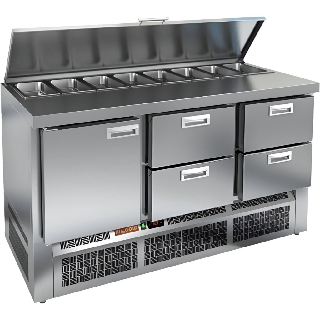 Модель сочетает в себе прочную рабочую поверхность и охлаждаемый внутренний объем, что упрощает процесс приготовления: все необходимые ингредиенты всегда под рукой. Корпус и столешница изготовлены из нержавеющей стали, устойчивой к воздействию влаги, механическим повреждениям и легко поддающейся очистке. Металлическая крышка защищает продукты от загрязнений и сохраняет их свежесть.