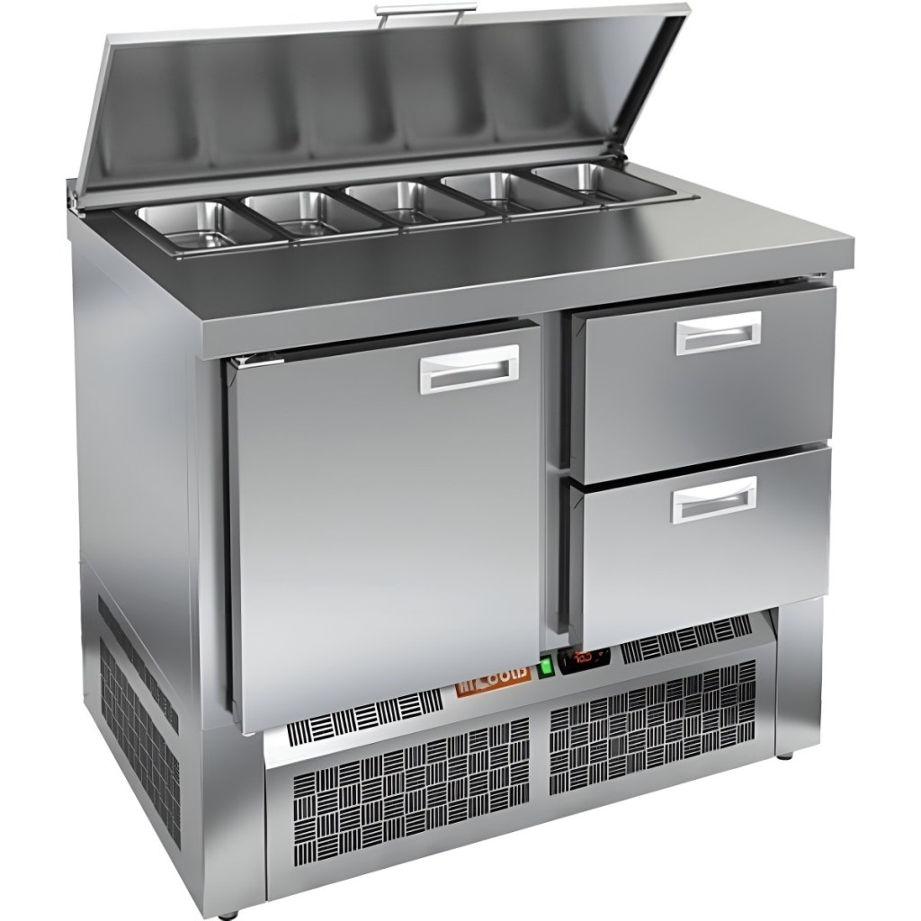 HiCold SLE1-12GN (1/3) О с крышкой — это практичное и многофункциональное решение для профессиональной кухни. Благодаря вместительности, продуманной конструкции и надежной термоизоляции, стол позволяет организовать эффективное рабочее пространство и обеспечивает сохранность свежести продуктов в течение всего рабочего дня.