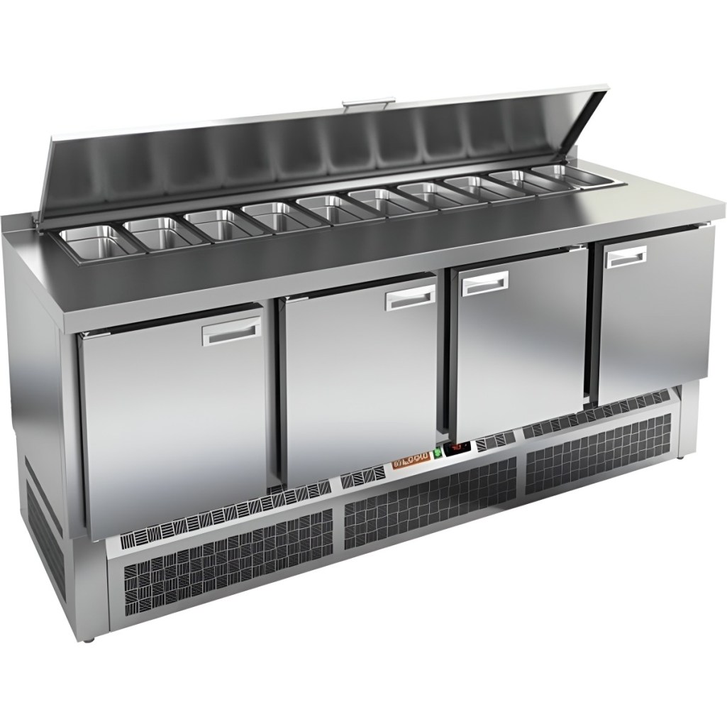 Каталог оборудования Холодильное оборудованиеСтолы охлаждаемыеСтолы холодильные для салатовСтол холодильный для салатов HiCold SLE2-1111GN (1/6) Стол холодильный для салатов HiCold SLE2-1111GN (1/6) Код товара: 061-995 Поделиться: WhatsAppTelegram СравнитьДобавить в КПВ избранное 0 171 802 ₽ В корзину 0 шт Под заказСамовывоз сегодня бесплатно Взять в кредит Купить в лизинг Получить консультацию в WhatsApp Описание Характеристики Отзывы 0 Инструкции 2 Стол холодильный для салатов HiCold SLE2-1111GN (1/6) — это профессиональный салатный стол, предназначенный для использования в кафе, ресторанах, пиццериях и других предприятиях общественного питания. Он совмещает в себе просторную рабочую поверхность и охлаждаемый объем, обеспечивая удобство и эффективность при приготовлении различных блюд — от салатов до пиццы. Благодаря корпусу и столешнице из нержавеющей стали, оборудование устойчиво к коррозии, легко очищается и соответствует санитарным требованиям. Ключевые особенности: Электронная панель управления — обеспечивает точное регулирование температуры и удобство в эксплуатации. 4 вместительные полки формата GN 1/1 — позволяют организовать хранение большого объема продуктов и ингредиентов. Салат-бар вмещает до 11 гастроемкостей — оптимален для широкого ассортимента заготовок. Автоматические доводчики дверей с фиксацией — повышают удобство использования, особенно при загрузке и выгрузке продуктов. Магнитные уплотнители — легко заменяются и обеспечивают плотное прилегание, предотвращая утечку холода. Открытая агрегатная часть — облегчает техническое обслуживание. Регулируемые ножки — позволяют установить стол на любой поверхности, компенсируя неровности пола. Глубина гастроемкостей — до 100 мм, толщина столешницы — 50 мм, высота борта — 50 мм, толщина теплоизоляции — 50 мм — обеспечивают стабильное охлаждение и прочность конструкции. HiCold SLE2-1111GN — это функциональный и вместительный салатный стол, который идеально подходит для профессиональных кухонь с интенсивной загрузкой. Он сочетает в себе надежность, удобство и продуманную конструкцию для максимальной производительности на рабочем месте.Изображение товара, представленного на фото, может отличаться от его фактического вида. Показать все Габаритные размеры1970х700х850 ммДиапазон рабочей температурыот +2 до +10 °CРасположение агрегатаНижнее Материал столешницыНержавеющая Тип столаС дверьми Тип двериГлухая Объём505 лКоличество дверей4 штТип гастроемкостейGN 1/6 Размер полки530х325 ммНапряжение220 ВМощность0,46 кВтТип охлажденияДинамическое Тип оттайкиАвтоматическая СтолешницаС бортом Вес нетто135 кгВес брутто159 кгБрендHicold Оставить отзыв Еще никто не оставил отзыв на этот товар Паспорт на HICOLD SLE2-1111GN.pdfДекларация о соответствии.pdf Ранее просмотрено Под заказ 151 297 ₽ Шкаф холодильный Carboma ШХ‑0,8 INOX Под заказ 195 310 ₽ Стол холодильный среднетемпературный HiCold GN 11111 BR2 TN без столешницы В наличии Цена по запросу Стол холодильный для салатов Cooleq S903-7GN 1/3 Под заказ 165 592 ₽ Стол холодильный среднетемпературный HiCold GNE 22/TN без столешницы В наличии 54 603 ₽ Плита электрическая Kayman ПЭ-4-11-МХ В наличии 63 072 ₽ Стол холодильный для салатов HURAKAN HKN-SL2 Под заказ Цена по запросу Стол холодильный для салатов Cooleq S903-8GN 1/6