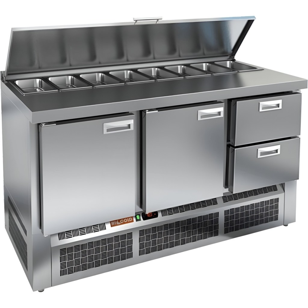 Стол холодильный для салатов HiCold SLE2-112GN (1/6) с крышкой — это профессиональный салатный стол, предназначенный для использования в кафе, ресторанах, пиццериях и других предприятиях общественного питания. Он совмещает в себе просторную рабочую поверхность и охлаждаемый объем, обеспечивая удобство и эффективность при приготовлении различных блюд — от салатов до пиццы.