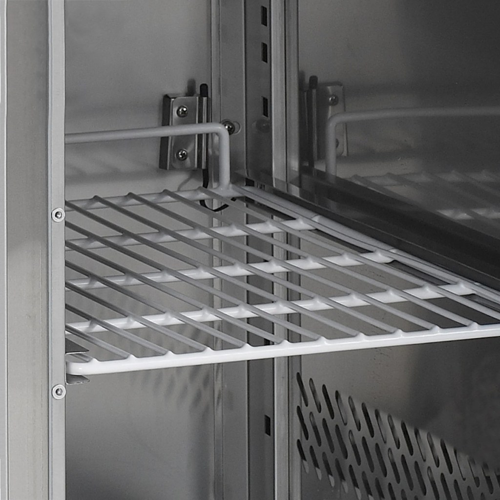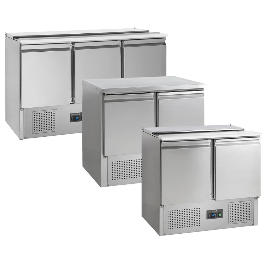 Каталог оборудования Холодильное оборудованиеСтолы охлаждаемыеСтолы холодильные для салатовСтол холодильный для салатов TEFCOLD SA910 Стол холодильный для салатов TEFCOLD SA910 Код товара: 010-357 Поделиться: WhatsAppTelegram СравнитьДобавить в КПВ избранное 0 94 892 ₽ В корзину 0 шт В наличииСамовывоз сегодня бесплатно Взять в кредит Купить в лизинг Получить консультацию в WhatsApp Описание Характеристики Отзывы 0 Стол холодильный для салатов TEFCOLD SA910 — профессиональное оборудование для обработки ингредиентов, приготовления салатов, охлаждения и кратковременного хранения продуктов на предприятиях общественного питания и торговли. Корпус и внутренняя отделка выполнены из нержавеющей стали AISI 304, что обеспечивает долговечность и простоту ухода. Особенности модели: Статическое охлаждение с вентилятором — равномерное поддержание температуры Автоматическое размораживание — поддержка стабильного режима без образования наледи Электронный термостат и градусник — точный контроль температуры Хладагент R600a, подзарядка — 0,068 кг Рабочая поверхность для нарезки и открытый верх под гастроёмкости 2 полки для удобной организации внутреннего пространства Регулируемые по высоте ножки — устойчивость на неровных поверхностях Климатический класс 4 — стабильная работа при температуре до +30 °C Полезный объём: 230 л Размеры полки: 530×325 мм Внутренние размеры камеры: 830×515×500 мм Энергопотребление: 3,12 кВт/сутки Уровень шума: 42 дБ TEFCOLD SA910 — компактный и надёжный холодильный стол для профессиональных кухонь и предприятий общественного питания. Он сочетает рабочую поверхность для нарезки, вместительное охлаждаемое пространство и эффективное управление температурой, обеспечивая удобство работы и сохранность продуктов.Изображение товара, представленного на фото, может отличаться от его фактического вида. Показать все Габаритные размеры900×700×890 ммДиапазон рабочей температурыот +2 до +10 °CРасположение агрегатаНижнее Материал столешницыНержавеющая Тип столаС дверьми Тип двериГлухая Общий объем260 лПолезный объем230 лКоличество дверей2 штРазмер полки530×325 ммНапряжение230 ВМощность0,15 кВтТип охлажденияСтатический Тип оттайкиАвтоматическая ХладагентR600a Габариты в упаковке980×770×1040 ммВес нетто72 кгВес брутто82 кгБрендTefcold Оставить отзыв Еще никто не оставил отзыв на этот товар Похожие товары Перейти в каталог Под заказ 96 524 ₽ Стол холодильный среднетемпературный Polair TD2-G В наличии 64 485 ₽ Стол холодильный среднетемпературный Cooleq S901 Под заказ 85 405 ₽ Стол холодильный среднетемпературный Cooleq SNACK2100TN/600 В наличии 65 229 ₽ Стол холодильный среднетемпературный HURAKAN HKN-GNL2TN С этим товаром покупают В наличии 189 749 ₽ Шкаф морозильный Polair CB114-S Под заказ 64 467 ₽ Витрина холодильная для ингредиентов HICOLD VRTG 1390 1/3 Ранее просмотрено Под заказ 441 450 ₽ Горка холодильная Carboma FC20-07 VM 2,5-1 0300 LIGHT фронт Х0 (версия 2,0) (9006-9005) (бок металл)