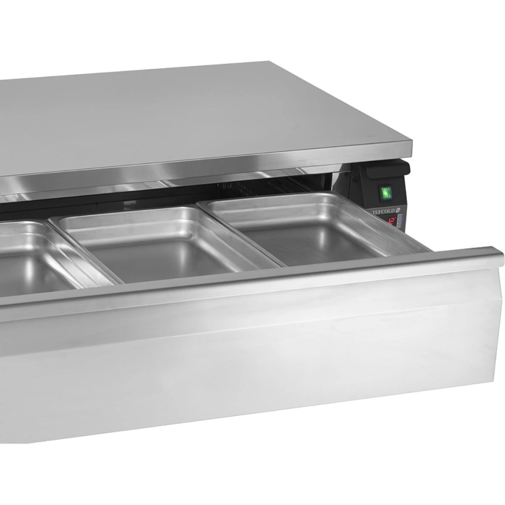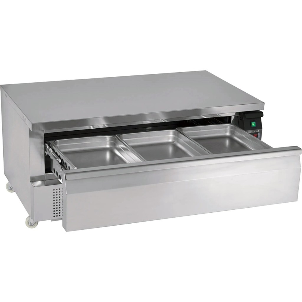 Каталог оборудования Холодильное оборудованиеСтолы охлаждаемыеСтолы холодильные комбинированныеСтол холодильно-морозильный TEFCOLD UD1-3 Стол холодильно-морозильный TEFCOLD UD1-3 Код товара: 010-375 Поделиться: WhatsAppTelegram СравнитьДобавить в КПВ избранное 0 158 753 ₽ В корзину 0 шт В наличииСамовывоз сегодня бесплатно Взять в кредит Купить в лизинг Получить консультацию в WhatsApp Описание Характеристики Отзывы 0 Инструкции 2 Стол холодильно-морозильный TEFCOLD UD1-3 предназначен для обработки ингредиентов и хранения охлаждённых и замороженных продуктов на предприятиях общественного питания и торговли. Модель оснащена расположенным снизу агрегатным отсеком, столешницей, гастрономированным выдвижным ящиком и кнопочной панелью управления с цифровым дисплеем. Корпус и внутренняя отделка выполнены из высококачественной нержавеющей стали SS304, обеспечивая долговечность и лёгкость в уходе. Особенности модели: Динамическое охлаждение с равномерной циркуляцией воздуха Автоматическая оттайка для удобства эксплуатации Электронный контроллер Dixell с цифровой температурной индикацией Возможность переключения между холодильным (1–4 °C) и морозильным (-21–-18 °C) режимами Самодиагностика с отображением неисправностей 4 поворотных колеса (2 с фиксацией) для лёгкой транспортировки Экологичный энергоэффективный хладагент R290, масса 0,07 кг Прочные износостойкие материалы и качественные комплектующие Класс энергоэффективности: E Климатический класс: 5 Формат гастроёмкостей: GN3/1, вместимость 3 шт. Общий объём: 116 л, полезный объём: 77 л Среднее энергопотребление: 6,05 кВт/сутки, 2208 кВт⋅ч/год Максимальная нагрузка: столешница 240 кг, ящик 60 кг Максимальная температура окружающей среды: 40 °C, относительная влажность до 40% Внутренние размеры: 1000×565×205 мм Уровень шума: 54 дБ TEFCOLD UD1-3 — универсальный и надёжный комбинированный стол для профессиональных кухонь. Он обеспечивает эффективное охлаждение и заморозку продуктов, удобство эксплуатации и долговечность благодаря прочным материалам и качественной сборке. Эргономичный дизайн и высокая энергоэффективность делают его оптимальным решением для предприятий общественного питания и торговли.Изображение товара, представленного на фото, может отличаться от его фактического вида. Показать все Габаритные размеры1230×700×600 ммТемпература морозильного отделенияот -21 до -18 °CТемпература холодильного отделенияот +1 до +4 °CРасположение агрегатаНижнее Материал столешницыНержавеющая Тип столаС ящиками Полезный объем77 лКоличество ящиков1 штТип гастроемкостейGN3/1 Климатический класс5 Уровень шума42 дБНапряжение230 ВМощность0,27 кВтРасход электроэнергии в сутки2,39 кВт/сутТип охлажденияДинамический Тип оттайкиАвтоматическая ХладагентR290 Габариты в упаковке1310×770×740 ммВес нетто90 кгВес брутто105 кгБрендTefcold Оставить отзыв Еще никто не оставил отзыв на этот товар Инструкция на TEFCOLD UD1-3.pdfСпецификация на TEFCOLD UD1-3.pdf Похожие товары Перейти в каталог Под заказ 111 051 ₽ Стол холодильный среднетемпературный HiCold GNG 1 BR2 HT Под заказ 79 911 ₽ Стол холодильный среднетемпературный HiCold GN 1/TN W Под заказ 79 461 ₽ Стол холодильный среднетемпературный HiCold SN 1/TN W Под заказ 104 947 ₽ Стол холодильный среднетемпературный Abat СХС-70 с бортом (дверь) С этим товаром покупают Под заказ 99 931 ₽ Шкаф холодильный Abat ШХс-0,5-02 Ранее просмотрено В наличии 55 088 ₽ Ларь морозильный с прям