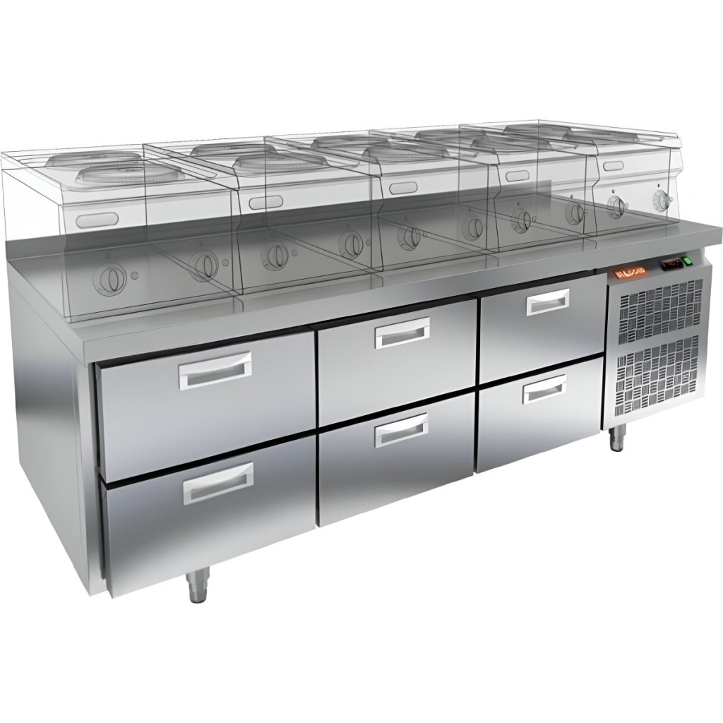 Каталог оборудования Холодильное оборудованиеСтолы охлаждаемыеСтолы холодильные под тепловое оборудованиеСтол охлаждаемый HiCold GN 222/TN LT SH под тепловое оборудование Стол охлаждаемый HiCold GN 222/TN LT SH под тепловое оборудование Код товара: 065-447 Поделиться: WhatsAppTelegram СравнитьДобавить в КПВ избранное 0 222 292 ₽ В корзину 0 шт Под заказСамовывоз сегодня бесплатно Взять в кредит Купить в лизинг Получить консультацию в WhatsApp Описание Характеристики Отзывы 0 Инструкции 2 Стол охлаждаемый HiCold GN 222/TN LT SH под тепловое оборудование предназначен для обработки продуктов и временного хранения скоропортящихся ингредиентов и напитков на предприятиях общественного питания и торговли. Устройство совмещает функции холодильной камеры и рабочей поверхности, что делает его особенно удобным для профессиональных кухонь. Столешница рассчитана на установку теплового оборудования: под рабочей поверхностью встроен ДСП-лист, который укрепляет конструкцию и препятствует проникновению тепла внутрь. Такое решение обеспечивает дополнительную жесткость, позволяет рационально использовать рабочее пространство и повышает эффективность работы на кухне. Особенности: 6 выдвижных ящиков обеспечивают удобный доступ к продуктам и рациональную организацию пространства Автоматические доводчики дверей с фиксатором открытого положения улучшают эргономику работы и помогают сохранить холод внутри камеры. Легкозаменяемые магнитные уплотнители способствуют герметичности и простоте технического обслуживания. Конструкция на низких ножках обеспечивает стабильность и удобство эксплуатации. Толщина столешницы — 50 мм обеспечивает надёжную опору при интенсивной эксплуатации. Высота борта — 50 мм препятствует скатыванию продуктов и инвентаря. Толщина теплоизоляции — 50 мм способствует энергоэффективности и поддержанию стабильной температуры. Температурный диапазон окружающей среды — от 12 до 37 °C, что делает оборудование универсальным в разных климатических условиях. HiCold GN 222/TN LT SH сочетает функциональность, надёжность и простоту в обслуживании. Идеально подходит для кухонь ресторанов, кафе и других заведений общепита, где важно одновременно эффективно хранить продукты и иметь под рукой рабочее пространство.Изображение товара, представленного на фото, может отличаться от его фактического вида. Показать все Габаритные размеры1835×700×610 ммДиапазон рабочей температурыот -2 до +10 °CМатериал столешницыНержавеющая Расположение агрегатаБоковое Объём375 лТип столаС ящиками Количество ящиков6 штНапряжение220 ВМощность0,46 кВтТип охлажденияДинамический Тип оттайкиАвтоматическая СтолешницаС бортом Габариты в упаковке2000×850×850 ммВес нетто124 кгВес брутто170 кгБрендHicold Оставить отзыв Еще никто не оставил отзыв на этот товар Паспорт на HICOLD GN 222TN LT.pdfДекларация о соответствии.pdf Похожие товары Перейти в каталог Под заказ 137 619 ₽ Стол холодильный среднетемпературный Polair TD3GN-G Под заказ 108 164 ₽ Стол холодильный среднетемпературный HURAKAN HKN-GN3TN С этим товаром покупают Под заказ 389 300 ₽ Шкаф холодильный для вызревания мяса Polair CS107 Meat (Тип 1) Ранее просмотрено Под заказ 482 178 ₽ Компрессорно-конденсаторный блок Север ACM-ZBD45-B6 Под заказ 281 602 ₽ Стол охлаждаемый HiCold GN 2222/TN LT SH под тепловое оборудование Под заказ 924 379 ₽ Компрессорно-конденсаторный блок Север AHM-ZFD41-B6 Под заказ 191 066 ₽ Камера холод
