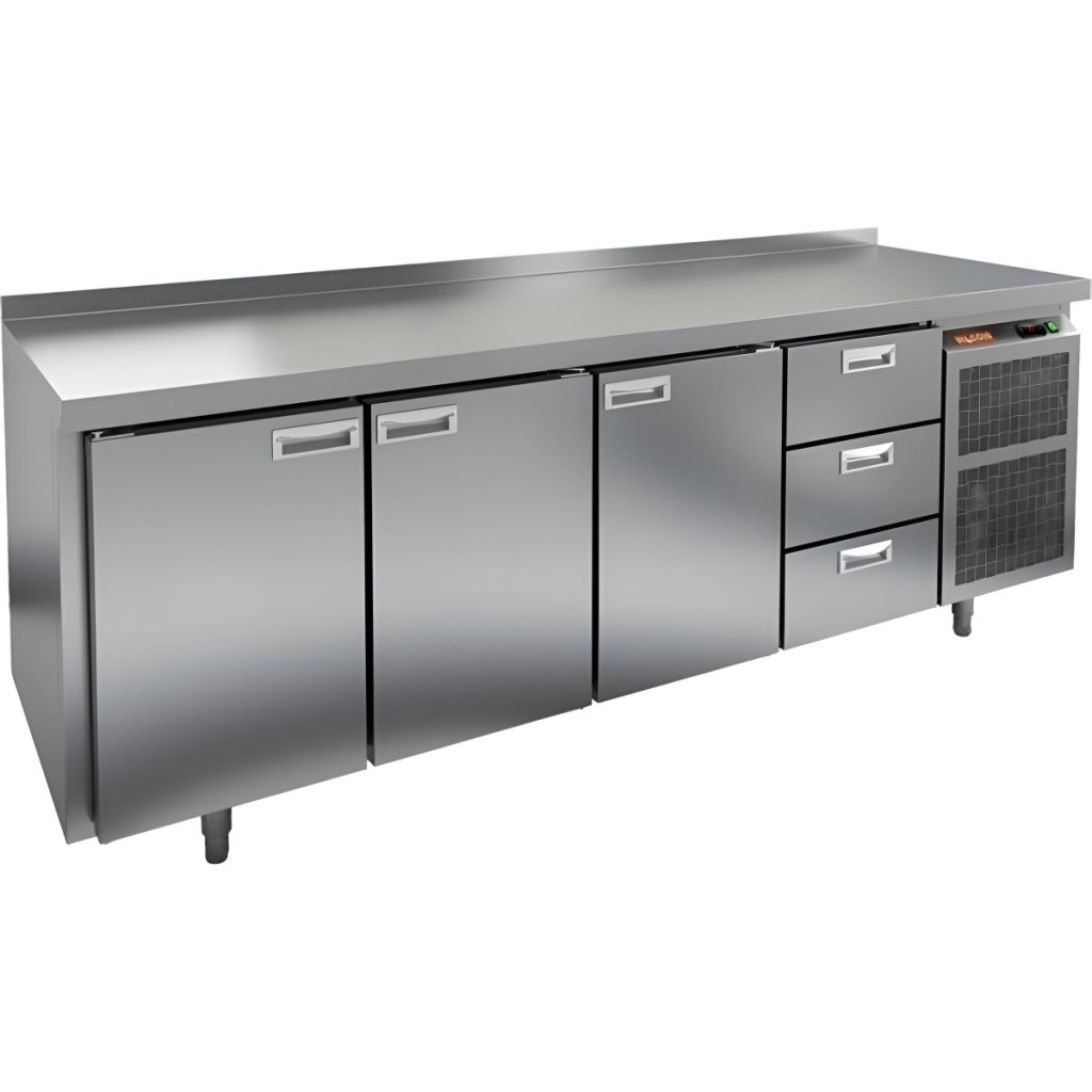 Каталог оборудования Холодильное оборудованиеСтолы охлаждаемыеСтолы холодильные среднетемпературныеСтол холодильный среднетемпературный HiCold SN 1113/TN Стол холодильный среднетемпературный HiCold SN 1113/TN Код товара: 001-329 Поделиться: WhatsAppTelegram СравнитьДобавить в КПВ избранное 0 212 841 ₽ В корзину 0 шт Под заказСамовывоз сегодня бесплатно Взять в кредит Купить в лизинг Получить консультацию в WhatsApp Описание Характеристики Отзывы 0 Инструкции 2 Стол холодильный среднетемпературный HiCold SN 1113/TN сочетает в себе рабочую поверхность для раскатывания теста и обработки ингредиентов, а также охлаждающую камеру для кратковременного хранения скоропортящихся продуктов и напитков. Оборудование предназначено для предприятий общественного питания и обеспечивает комфортную и эффективную работу на кухне. Особенности: Цельнозаливной корпус из нержавеющей стали с 50 мм теплоизоляцией, обеспечивающий высокую герметичность и жесткость конструкции. Надежный электронный блок управления с несколькими режимами оттаивания для удобства эксплуатации. Вентилятор повышенной мощности, обеспечивающий принудительную вентиляцию по всему объему стола и равномерное быстрое охлаждение. Интеллектуальное размораживание и термическое выпаривание конденсата для поддержания оптимальных условий внутри камеры. Новая экономичная модель компрессора, снижающая энергопотребление. Облегченный доступ к агрегату для удобства сервисного обслуживания. Двери с петлями-доводчиками, повышающими комфорт и безопасность при эксплуатации. Регулируемые по высоте ножки для адаптации к рабочей поверхности и неровностям пола. Максимальная нагрузка на полку — 50 кг. Высота борта — 50 мм для удобства и безопасности работы. Рабочая температура окружающего воздуха — от 12 до 37 °C. HiCold SN 1113/TN — это надежное, эргономичное и энергоэффективное решение для профессиональной кухни, сочетающее качественные материалы и современные технологии для оптимального хранения и подготовки продуктов.Изображение товара, представленного на фото, может отличаться от его фактического вида. Показать все Габаритные размеры2280×600×850 ммДиапазон рабочей температурыот -2 до +10 °CРасположение агрегатаБоковое Материал столешницыНержавеющая Тип столаС дверьми и ящиками Тип двериГлухая Объём570 лКоличество дверей3 штКоличество ящиков3 штНапряжение220 ВТип охлажденияДинамический Тип оттайкиАвтоматическая СтолешницаС бортом Вес нетто142 кгБрендHicoldВсе холодильные столы HicoldВсе оцинкованные холодильные столы Все холодильные столы с бортом Оставить отзыв Еще никто не оставил отзыв на этот товар Паспорт на HICOLD SN 1113/TN.pdfДекларация о соответствии.pdf Похожие товары Перейти в каталог Под заказ 197 541 ₽ Стол холодильный среднетемпературный HiCold SN 1112/TN Под заказ 258 741 ₽ Стол холодильный среднетемпературный HiCold SN 1133/TN В наличии 132 149 ₽ Стол холодильный среднетемпературный Cooleq GN4100TN С этим товаром покупают Под заказ 95 465 ₽ Жарочная поверхность Аbat АКО-80/1Н-С-02 Ранее просмотрено Под заказ 260 992 ₽ Стол холодильный среднетемпературный HiCold GN 332/TN О Под заказ 134 992 ₽ Стол холодильный среднетемпературный HiCold GNG 11 HT О Под заказ 113 044 ₽ Стол холодильный среднетемпературный Ангара СХН 1,0-600 Под заказ 203 302 ₽ Стол холодильный среднетемпературный HiCold GN 11111 BR3 TN Под заказ 126 442 ₽ Стол холодильный среднетемпературный HiCold GN 1/TN 1G