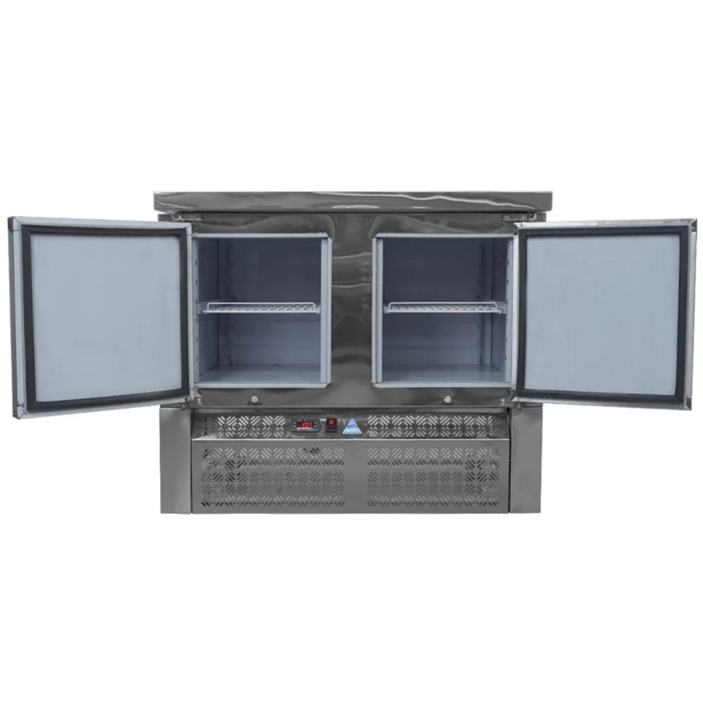 Каталог оборудования Холодильное оборудованиеСтолы охлаждаемыеСтолы морозильные низкотемпературныеСтол морозильный Ангара СХН 1,0-600 Стол морозильный Ангара СХН 1,0-600 Код товара: 066-364 Поделиться: WhatsAppTelegram СравнитьДобавить в КПВ избранное 0 125 552 ₽ В корзину 0 шт Под заказСамовывоз сегодня бесплатно Взять в кредит Купить в лизинг Получить консультацию в WhatsApp Описание Характеристики Отзывы 0 Стол морозильный Ангара СХН 1,0-600 предназначен для заморозки и хранения продуктов на предприятиях общественного питания и торговли. Модель сочетает функциональность, надёжность и удобство эксплуатации, обеспечивая эффективную работу даже при интенсивной загрузке. Компактная конструкция позволяет рационально использовать рабочее пространство кухни. Особенности модели: Нижнее расположение агрегата — обеспечивает лучшую эргономику, удобство обслуживания и равномерное распределение холода. Электронная панель управления — обеспечивает точный контроль и стабильную работу морозильной системы. Прочный корпус и столешница из нержавеющей стали — гарантируют долговечность, устойчивость к влаге и механическим воздействиям. Две дверцы и две полки размером 430×325 мм — позволяют удобно организовать внутреннее пространство и обеспечить быстрый доступ к замороженным продуктам. Регулируемые ножки — дают возможность адаптировать высоту стола под особенности рабочего места. Автоматические доводчики дверей с фиксацией — обеспечивают комфорт при работе и надёжное закрытие. Съёмные магнитные уплотнители — упрощают чистку и замену, сохраняя герметичность камеры и энергоэффективность. Морозильный стол Ангара СХН 1,0-600 — это профессиональное оборудование, идеально подходящее для предприятий общественного питания, где требуется надёжное хранение замороженных продуктов. Благодаря прочной конструкции, современному управлению и продуманной эргономике модель обеспечивает стабильную работу и удобство в ежедневной эксплуатации. Изображение товара, представленного на фото, может отличаться от его фактического вида. Показать все Габаритные размеры1000×600×850 ммДиапазон рабочей температурыот -18 до -10 °CРасположение агрегатаНижнее Материал столешницыНержавеющая Тип столаС дверьми Тип двериГлухая Объём210 лКоличество дверей2 штКоличество полок2 штРазмер полки430×325 ммНапряжение220 ВМощность0,22 кВтТип охлажденияДинамическое Тип оттайкиАвтоматическая СтолешницаС бортом БрендАнгараВсе морозильные столы с бортом Оставить отзыв Еще никто не оставил отзыв на этот товар Ранее просмотрено НовинкаПод заказ 139 572 ₽ Стол холодильный среднетемпературный Polair TM4-SC Под заказ 162 270 ₽ Витрина холодильная Carboma GC111 VV 2,0-1 (1010 Мариель) (динамика, без боковин)