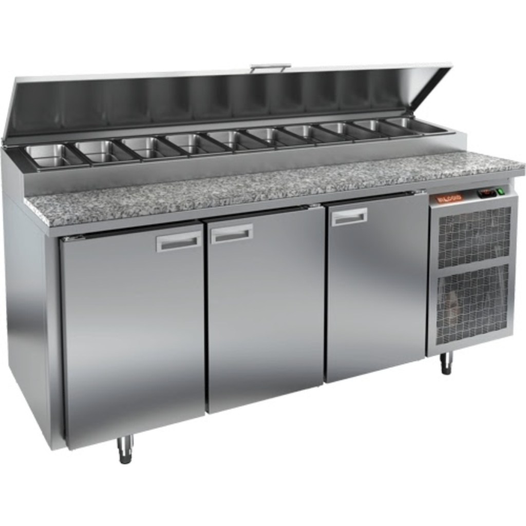 Каталог оборудования Холодильное оборудованиеСтолы охлаждаемыеСтолы холодильные для пиццыСтол холодильный для пиццы HiCold PZ1-111GN (1/3) камень Стол холодильный для пиццы HiCold PZ1-111GN (1/3) камень Код товара: 064-688 Поделиться: WhatsAppTelegram СравнитьДобавить в КПВ избранное 0 246 862 ₽ В корзину 0 шт Под заказСамовывоз сегодня бесплатно Взять в кредит Купить в лизинг Получить консультацию в WhatsApp Описание Характеристики Отзывы 0 Инструкции 2 Стол холодильный для пиццы HiCold PZ1-111GN (1/3) камень — это профессиональное оборудование для предприятий общественного питания и торговли. Он совмещает просторную рабочую поверхность для раскатки теста и подготовки ингредиентов с охлаждаемым объёмом для хранения продуктов и напитков. Такое решение экономит место на кухне и ускоряет работу повара, поскольку все необходимые компоненты всегда под рукой. Основные особенности: Столешница из камня — устойчива к механическим повреждениям, не впитывает запахи и легко очищается Динамическая система охлаждения — обеспечивает равномерное распределение холода Автоматическая оттайка — поддерживает стабильную работу без образования наледи Электронная панель управления — точная регулировка температуры и контроль режимов 3 вместительные полки формата GN 1/1 (размер 530×325 мм) Автоматические доводчики дверей с фиксатором открытого положения — удобство при загрузке и выгрузке Легкозаменяемые магнитные уплотнители — поддержание герметичности и экономия времени на обслуживании Открытая агрегатная часть — упрощённый доступ к техническим элементам Регулируемые по высоте ножки — лёгкая установка по уровню Максимальная глубина гастроёмкостей: 100 мм Глубина рабочей поверхности: 324 мм Толщина столешницы и теплоизоляции: 50 мм Вместимость салат-бара: до 10 гастроёмкостей Стол холодильный HiCold PZ1-111GN (1/3) камень — это компактный и функциональный стол для пиццы с высокой производительностью и удобством эксплуатации. Он идеально подходит для интенсивной работы на профессиональной кухне, сочетая рабочую поверхность и холодильный блок в одном корпусе.Изображение товара, представленного на фото, может отличаться от его фактического вида. Показать все Габаритные размеры1835×700×1000 ммДиапазон рабочей температурыот +2 до +10 °CРасположение агрегатаБоковое Материал столешницыГранитная Тип столаС дверьми Тип двериГлухая Объём505 лТип гастроемкостейGN 1/3 Количество дверей3 штРазмер полки530×325 ммНапряжение220 ВМощность0,46 кВтТип охлажденияДинамическое Тип оттайкиАвтоматическая Габариты в упаковке2000×850×1080 ммВес нетто172 кгВес брутто200 кгБрендHicold Оставить отзыв Еще никто не оставил отзыв на этот товар Паспорт на HICOLD PZ1-111GN.pdfДекларация о соответствии.pdf Ранее просмотрено Под заказ 220 222 ₽ Стол холодильный среднетемпературный HiCold SNE 222/TN без столещницы Под заказ 117 630 ₽ Витрина холодильная настольная Carboma AC59 VM 0,9-1 (слайдер) (0430) Под заказ 147 519 ₽ Стол холодильный среднетемпературный HiCold GN 3 BR2 TN без столешницы Под заказ 166 042 ₽ Стол холодильный среднетемпературный HiCold GN 112/TN без столешницы