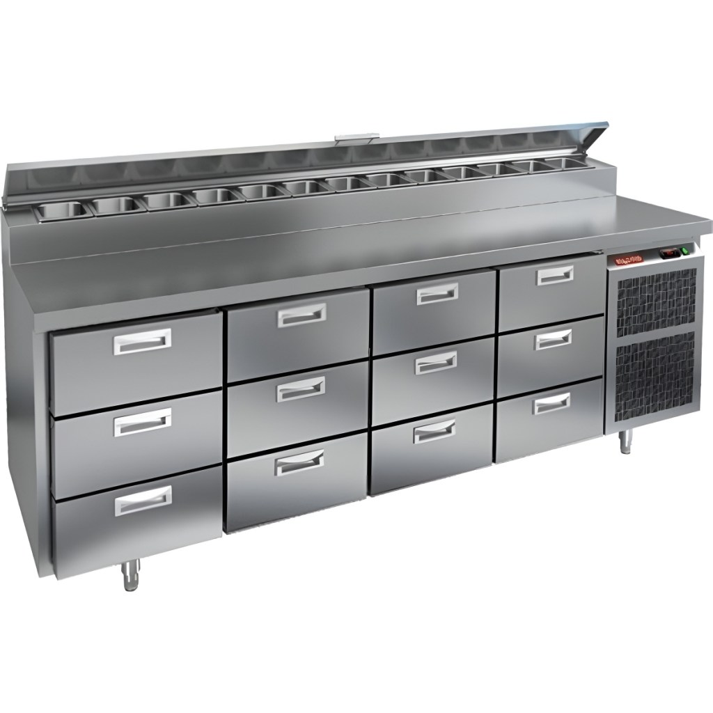 Каталог оборудования Холодильное оборудованиеСтолы охлаждаемыеСтолы холодильные для пиццыСтол холодильный для пиццы HiCold PZ2-3333GN (1/6) Стол холодильный для пиццы HiCold PZ2-3333GN (1/6) Код товара: 064-764 Поделиться: WhatsAppTelegram СравнитьДобавить в КПВ избранное 0 434 242 ₽ В корзину 0 шт Под заказСамовывоз сегодня бесплатно Взять в кредит Купить в лизинг Получить консультацию в WhatsApp Описание Характеристики Отзывы 0 Инструкции 1 Стол холодильный для пиццы HiCold PZ2-3333GN (1/6) камень предназначен для кухонь и предприятий общественного питания. Он используется для раскатки теста, подготовки ингредиентов для пиццы, салатов и других блюд, а также для охлаждения и кратковременного хранения скоропортящихся продуктов. Модель совмещает гранитную рабочую поверхность и охлаждаемый отсек с 12 выдвижными ящиками, обеспечивая удобный доступ к ингредиентам и эффективное хранение без дверей. Особенности: Динамическая система охлаждения для равномерного поддержания температуры Автоматическая оттайка для удобного обслуживания Электронная панель управления для точной настройки параметров Вместительная внутренняя полка формата GN 1/1 (размер 530×325 мм) 12 выдвижных ящиков для хранения ингредиентов Легкозаменяемые магнитные уплотнители для герметичности Открытая агрегатная часть для легкого доступа к компонентам Регулируемые по высоте ножки для устойчивости Гранитная столешница глубиной 486 мм и толщиной 50 мм — устойчива к повреждениям, легко моется и гигиенична Толщина теплоизоляции: 50 мм Максимальная глубина гастроемкостей: 100 мм Вместимость салат-бара: 13 гастроемкости Стол холодильный HiCold PZ2-3333GN (1/6) камень — это надежное и удобное решение для профессиональной кухни. Он обеспечивает легкий доступ к ингредиентам, упрощает хранение и подготовку продуктов и полностью соответствует стандартам предприятий общественного питания.Изображение товара, представленного на фото, может отличаться от его фактического вида. Показать все Габаритные размеры2280×700×1000 ммДиапазон рабочей температурыот +2 до +10 °CРасположение агрегатаБоковое Материал столешницыНержавеющая Тип столаС ящиками Объём660 лТип гастроемкостейGN 1/6 Количество ящиков12 штРазмер полки530×325 ммНапряжение220 ВМощность0,5 кВтТип охлажденияДинамическое Тип оттайкиАвтоматическая Габариты в упаковке2420×850×1080 ммВес нетто208 кгВес брутто240 кгБрендHicoldВсе холодильные столы для пиццы HicoldВсе нержавеющие холодильные столы для пиццы Оставить отзыв Еще никто не оставил отзыв на этот товар Декларация о соответствии.pdf Ранее просмотрено В наличии Цена по запросу Стол холодильный для салатов Cooleq S903