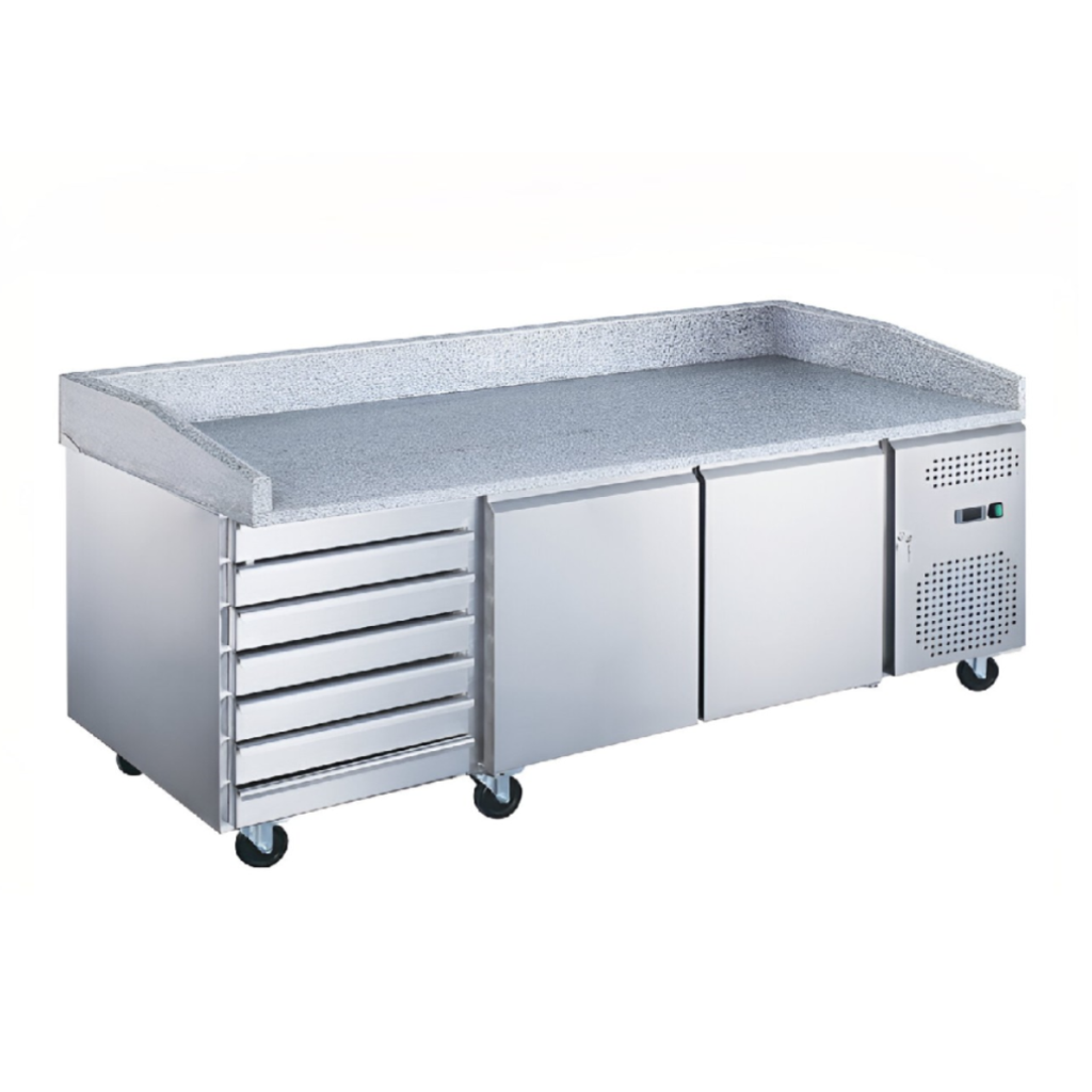 Каталог оборудования Холодильное оборудованиеСтолы охлаждаемыеСтолы холодильные для пиццыСтол холодильный для пиццы HURAKAN HKN-PZG3-116 камень Стол холодильный для пиццы HURAKAN HKN-PZG3-116 камень Код товара: 060-116 Поделиться: WhatsAppTelegram СравнитьДобавить в КПВ избранное 0 155 551 ₽ В корзину 0 шт В наличии на 2 складахДоступно для заказа 12 шт.Наличие на складахВолжскг.Волжск, ул.Промбаза, д.1В наличии 8 шт.МоскваМО, Бритово, Раменский гор. округ, Складской комплекс ССТ, корп. 2, секция 2В наличии 4 шт.Самовывоз сегодня бесплатно Расчет стоимости доставкиОткудаВолжскМоскваКудаМоскваСанкт-ПетербургАстраханьБарнаулБелгородБрянскВладивостокВолгоградВоронежЕкатеринбургИвановоИжевскИркутскКазаньКалининградКемеровоКировКраснодарКрасноярскКурскЛипецкМагнитогорскМахачкалаНабережные ЧелныНижний НовгородНижний ТагилНовокузнецкНовосибирскОмскОренбургПензаПермьПятигорскРостов-на-ДонуРязаньСамараСаратовСимферопольСтавропольТверьТольяттиТомскТулаТюменьУлан-УдэУльяновскУфаХабаровскЧебоксарыЧелябинскЯрославльРассчитатьРасчет стоимости доставки указан приблизительный, более точный расчет Вам может осуществить сотрудник транспортной компании. Взять в кредит Купить в лизинг Получить консультацию в WhatsApp Описание Характеристики Отзывы 0 Инструкции 1 Стол холодильный для пиццы HURAKAN HKN-PZG3-116 — это удобное и практичное решение для хранения ингредиентов и организации рабочего процесса на кухне предприятий общественного питания. Идеально подходит для приготовления пиццы, салатов, сэндвичей и других блюд, требующих охлажденных ингредиентов. Особенности: • Прочная каменная столешница с высокими бортиками — удобно работать и легко поддерживать чистоту • Широкая рабочая поверхность — комфортно готовить и собирать блюда • Корпус из нержавеющей стали — надежность и долгий срок службы • Оснащен колесами — легко перемещать Hurakan HKN-PZG3-116 — это удобный и многофункциональный стол, который сочетает в себе хранение продуктов и комфортное рабочее пространство, что делает его отличным выбором для профессиональной кухни.Изображение товара, представленного на фото, может отличаться от его фактического вида. Показать все Габаритные размеры2020×800×1000 ммДиапазон рабочей температурыот -2 до 8 °CРасположение агрегатаБоковое Материал столешницыГранитная Тип столаС дверьми и ящиками Тип двериГлухая Объём580 лКоличество дверей2 штКоличество ящиков6 штНапряжение220 ВМощность0,32 кВтТип охлажденияСтатическое Тип оттайкиАвтоматическая ХладагентR134A СтолешницаС бортом Вес брутто346 кгБрендHurakan Оставить отзыв Еще никто не оставил отзыв на этот товар Инструкция на Hurakan HKN-PZG3-116.pdf Ранее просмотрено Пульт в комплектеПод заказ 322 405 ₽ Сплит-система холодильная низкотемпературная Арктика СМH 445 Под заказ 7 590 ₽ Направляющая Abat для линии "Патша" 630 мм в сборе (ЭМК70М-30-02СБ) Под заказ 20 407 ₽ Льдогенератор HURAKAN HKN-IMF18M (пальчики)
