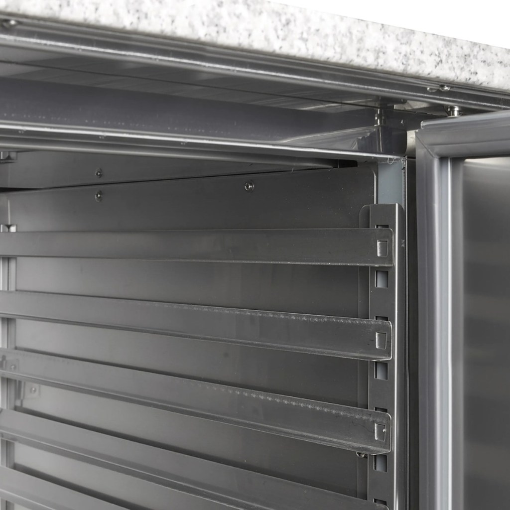 Каталог оборудования Холодильное оборудованиеСтолы охлаждаемыеСтолы холодильные для пиццыСтол холодильный для пиццы TEFCOLD PT1365 + VK33-140 Стол холодильный для пиццы TEFCOLD PT1365 + VK33-140 Код товара: 010-225 Поделиться: WhatsAppTelegram СравнитьДобавить в КПВ избранное 0 258 953 ₽ В корзину 0 шт Под заказСамовывоз сегодня бесплатно Взять в кредит Купить в лизинг Получить консультацию в WhatsApp Описание Характеристики Отзывы 0 Инструкции 2 Стол для пиццы TEFCOLD PT1365 — профессиональное оборудование, предназначенное для обработки ингредиентов, охлаждения и кратковременного хранения продуктов на предприятиях общественного питания и торговли. Корпус и внутренняя обшивка выполнены из нержавеющей стали AISI 304, обеспечивая долговечность, гигиеничность и простоту ухода. Особенности модели: Динамическое охлаждение — равномерное распределение температуры по всему объёму Автоматическое размораживание — поддержание стабильной работы без образования наледи Электронный термостат и градусник — точное регулирование температуры Хладагент R600a, подзарядка — 0,11 кг Самозакрывающиеся двери — герметичность и сохранение холода 3 полки — удобная организация внутреннего пространства Регулируемые по высоте ножки — устойчивость на неровных поверхностях Климатический класс 4 — работа при температуре окружающей среды до +30 °C Полезный объём: 368 л Внутренние размеры: 1295×515×500 мм Энергопотребление: 3 кВт/сутки Уровень шума: 42 дБ TEFCOLD PT1365 — надёжный и функциональный холодильный стол для профессиональных кухонь, пиццерий и предприятий общественного питания. Модель сочетает удобную рабочую поверхность, вместительное охлаждаемое пространство и современную систему управления температурой, обеспечивая сохранность ингредиентов и комфорт в работе. Изображение товара, представленного на фото, может отличаться от его фактического вида. Показать все Габаритные размеры1365×700×1457 ммДиапазон рабочей температурыот +2 до +10 °CРасположение агрегатаНижнее Материал столешницыГранитная Тип столаС дверьми Тип двериГлухая Общий объем400 лПолезный объем368 лТип гастроемкостейGN1/1 Количество дверей3 штКлиматический класс4 Напряжение220 ВРасход электроэнергии в сутки3,15 кВт/сутТип охлажденияДинамическое Тип оттайкиАвтоматическая ХладагентR600a Уровень шума42 дБГабариты в упаковке1440×770×1510 ммВес нетто210 кгВес брутто235 кгБрендTefcold Оставить отзыв Еще никто не оставил отзыв на этот товар Брошюра на TEFCOLD PT1365-I.pdfИнструкция на TEFCOLD PT1365-I.pdf Похожие товары Перейти в каталог Под заказ 197 749 ₽ Стол холодильный для пиццы TEFCOLD PT930 Под заказ 164 643 ₽ Стол холодильный для пиццы Abat СХС-80-01П 2 двери нерж. Под заказ 324 250 ₽ Стол холодильный для пиццы TEFCOLD PT1200 + VK38-150 С этим товаром покупают Под заказ 201 448 ₽ Шкаф морозильный Abat ШХн-1,4-02 Ранее просмотрено Под заказ 161 136 ₽ Стол холодильный для пиццы Abat СХС-70-01П 2 двери нерж.