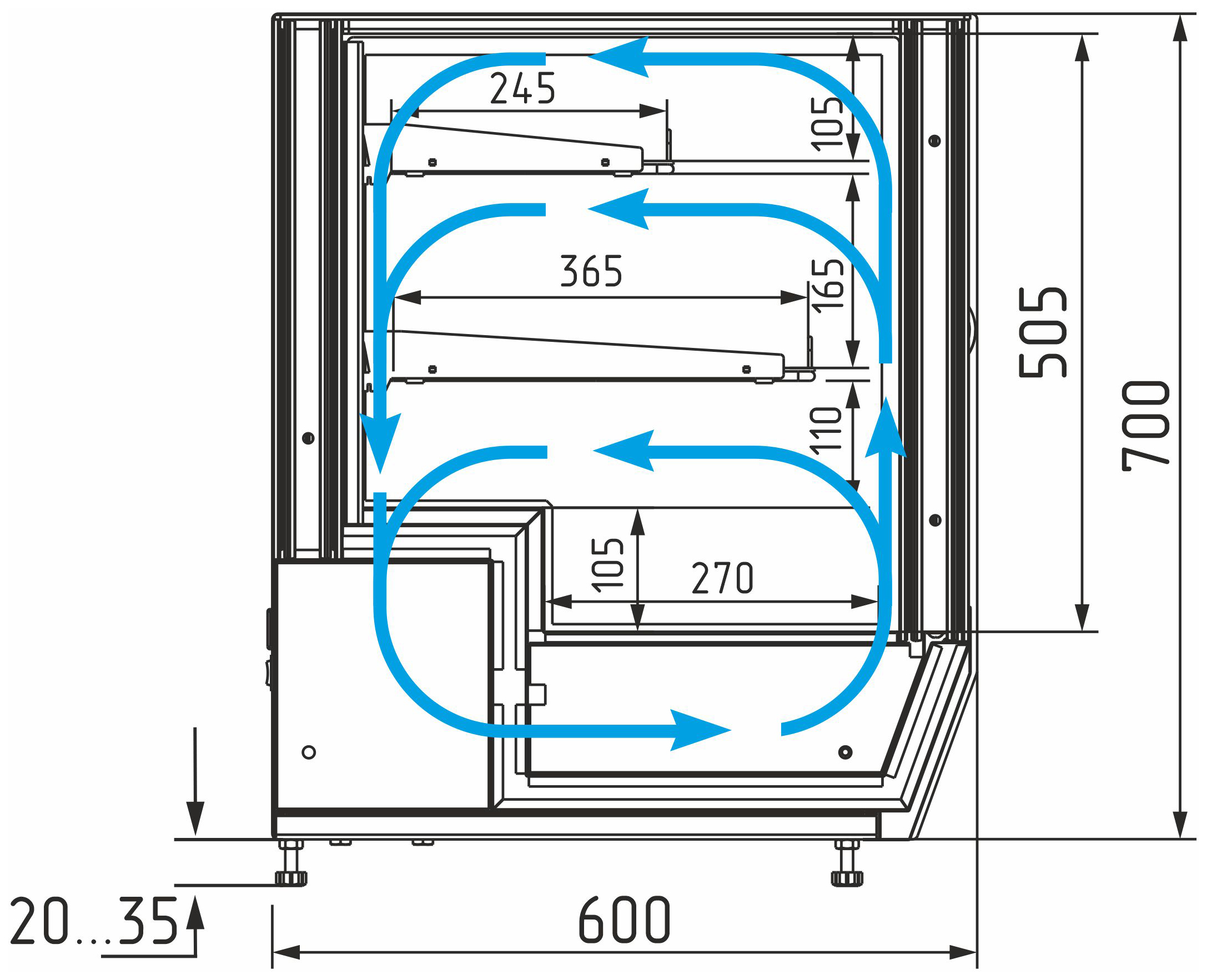 Каталог оборудования Холодильное оборудованиеВитрины настольныеВитрина холодильная настольная Carboma AC59 VM 0,9-1 (слайдер) (0430) Витрина холодильная настольная Carboma AC59 VM 0,9-1 (слайдер) (0430) Код товара: 063-687 Поделиться: WhatsAppTelegram СравнитьДобавить в КПВ избранное 0 117 630 ₽ В корзину 0 шт Под заказСамовывоз сегодня бесплатно Взять в кредит Купить в лизинг Получить консультацию в WhatsApp Описание Характеристики Отзывы 0 Инструкции 2 Витрина холодильная настольная Carboma AC59 VM 0,9-1 (слайдер) (0430) — это универсальная охлаждаемая витрина для демонстрации и кратковременного хранения кондитерских изделий, десертов, салатов и напитков. Идеально подходит для небольших кафе, баров и заведений общественного питания. Модель оснащена закалёнными боковыми стеклопакетами, раздвижными фронтальными и задними дверцами, а также двумя охлаждаемыми полками-решётками с ограничителями. Может устанавливаться на столешницу или встраиваться в барную стойку. Корпус выполнен из стали с ППУ-теплоизоляцией, а рабочая поверхность — из нержавеющей стали. Ключевые особенности: Динамическая система охлаждения — равномерное распределение температуры Компрессор европейского производства — высокая надёжность Электронный блок управления Carel — точный контроль температурного режима Выпариватель конденсата — исключает необходимость ручного слива Возможность установки полок под углом 5° — улучшенная презентация Фронтальные и задние раздвижные дверцы — удобный доступ с обеих сторон Боковая LED-подсветка — подчёркивает структуру десертов и изделий Современный кубический дизайн — стильный внешний вид Регулируемые ножки-опоры — устойчивость на любых поверхностях Настольное или встраиваемое размещение — гибкость установки Стабильный температурный режим — для безопасного хранения продуктов Глубина нижней зоны выкладки: 270 мм Глубина полок: 365 мм (верхняя) / 245 мм (нижняя) Длина нижнего поддона: 866 мм Максимальная высота выкладки продуктов: нижний поддон — 150 мм, полки — 100 мм Температура окружающей среды: от 12 до 25 °C Относительная влажность воздуха: до 60% Carboma AC59 VM 0,9-1 (слайдер) (0430) — это надёжная и эргономичная охлаждаемая витрина с удобным доступом с обеих сторон, которая обеспечит качественную демонстрацию и сохранность продукции в кафе, барах и точках продаж.Изображение товара, представленного на фото, может отличаться от его фактического вида. Показать все Габаритные размеры900×600×735 ммДиапазон рабочей температурыот +4 до +10 °CДлина900 ммГлубина600 ммВысота735 ммРазмещениеГоризонтальная Площадь выкладки0,73 м²Полезный объем витрины0,09 м³Тип охлажденияДинамическое Климатический класс3 ХладагентR290, R600a Напряжение220 ВЭнергопотребление в сутки0,5 кВтКоличество полок2 штГабариты в упаковке1050×750×890 ммВес нетто89 кгВес брутто126 кгБрендПолюсВсе витрины настольные CarbomaВсе холодильные настольные витриныВсе стеклянные настольные витрины Оставить отзыв Еще никто не оставил отзыв на этот товар Брошюра на Carboma AMRA AC59 VM.pdfСхема Carboma AMRA AC59 VM 0,9-1 Slider.jpg Похожие товары Перейти в каталог Под заказ 151 600 ₽ Витрина кондитерская Carboma K70 VM 1,3-12 Light (0013-0430) В наличии 166 000 ₽ Витрина кондитерская Carboma KC71-110 VV 0,9-1 Под заказ 150 700 ₽ Витрина кондитерская Carboma KC71-150 N 0,9-1 нейтральная Под заказ 199 500 ₽ Витрина кондитерская Chilz VETE KUB OFT 130 шоколад, золотой глянец В наличии 158 200 ₽ Витрина кондитерская Carboma K70 VV 0,9-1 Standard (